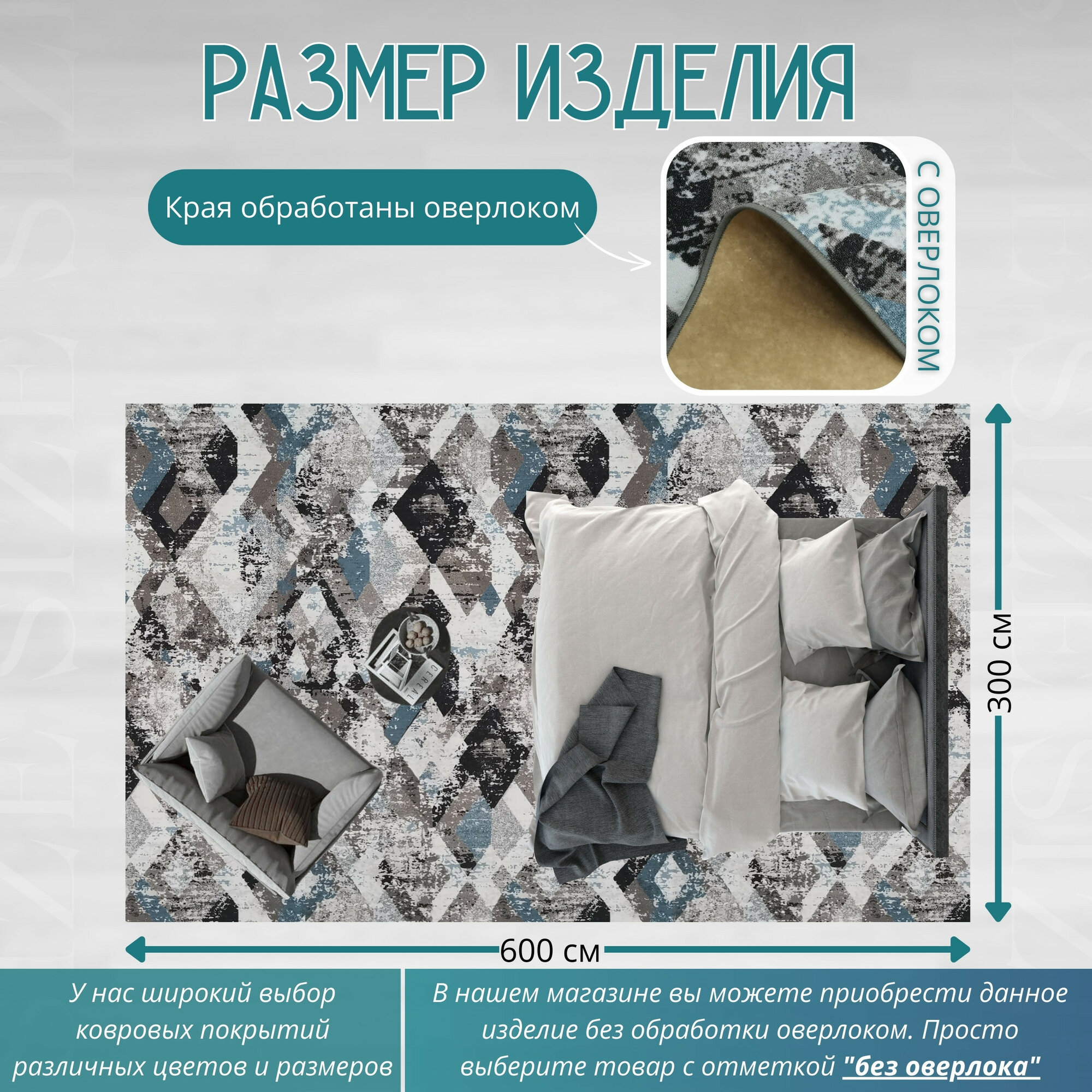 Купить Ковролин метражом 3х6 м, гладкий "Ромб", серо-синий с оверлоком