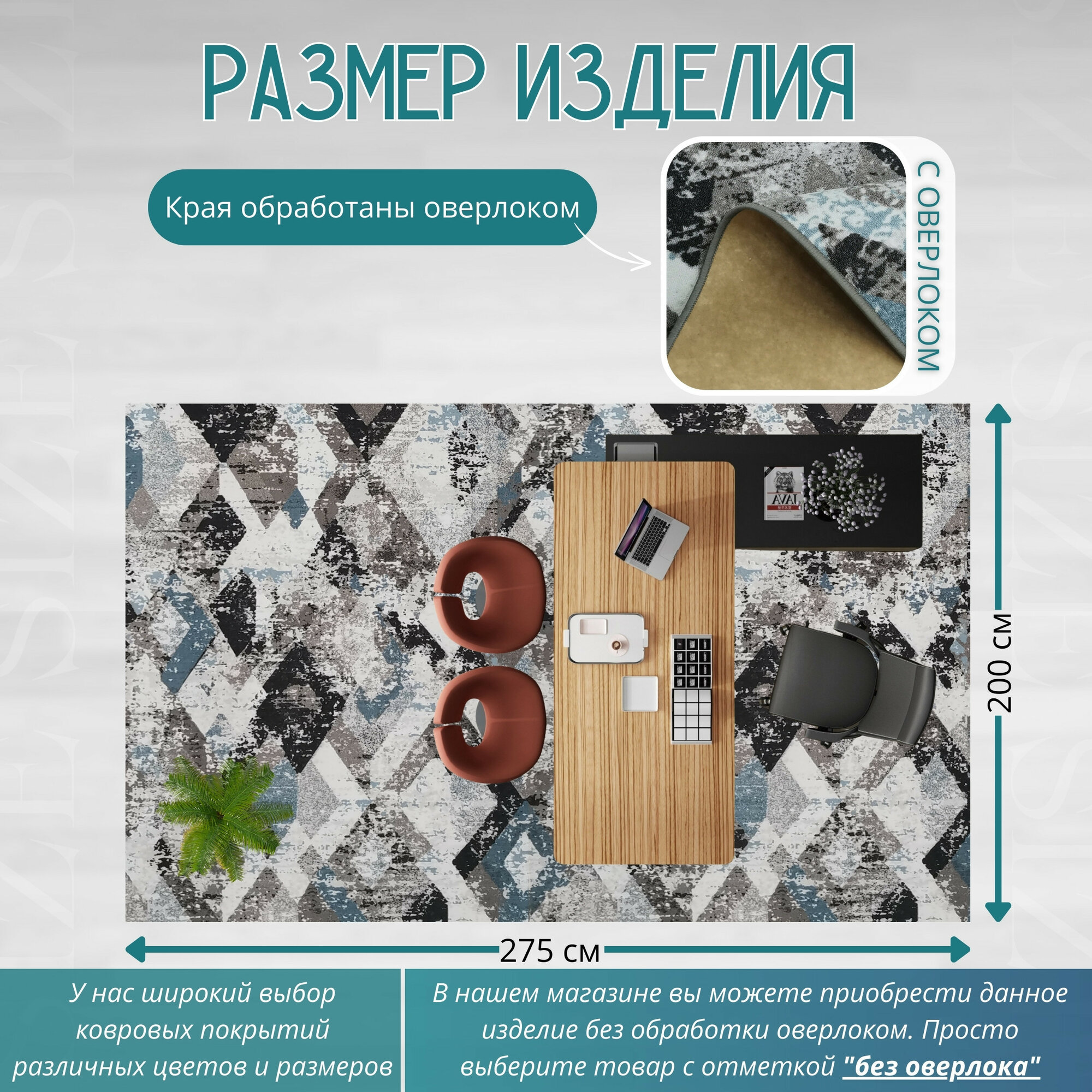 Ковролин метражом 2,5х3 м, гладкий "Ромб", серо-синий с оверлоком