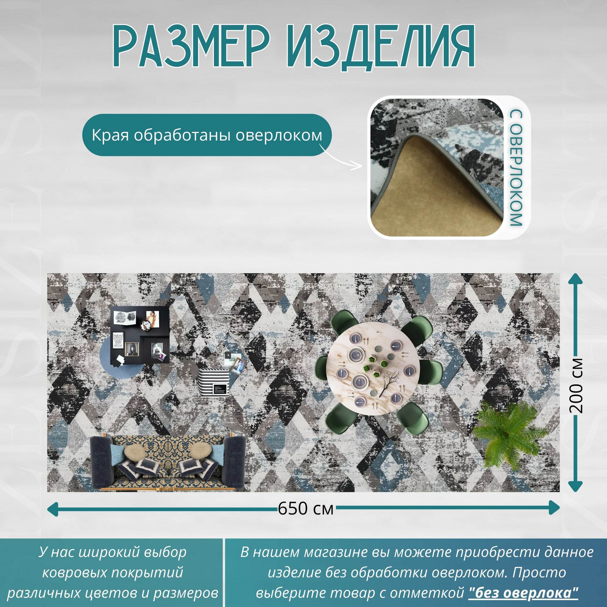 Ковролин метражом 3х6,5 м, гладкий "Ромб", серо-синий с оверлоком