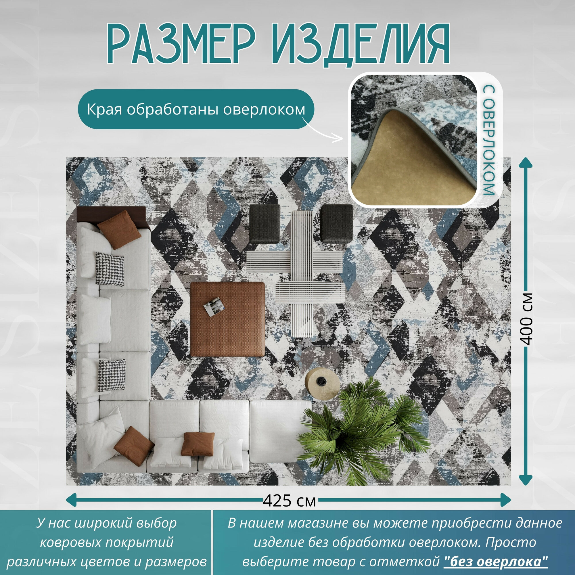 СохранитьКовролин метражом 4х4,25 м, гладкий "Ромб", серо-синий с оверлоком интересное:
