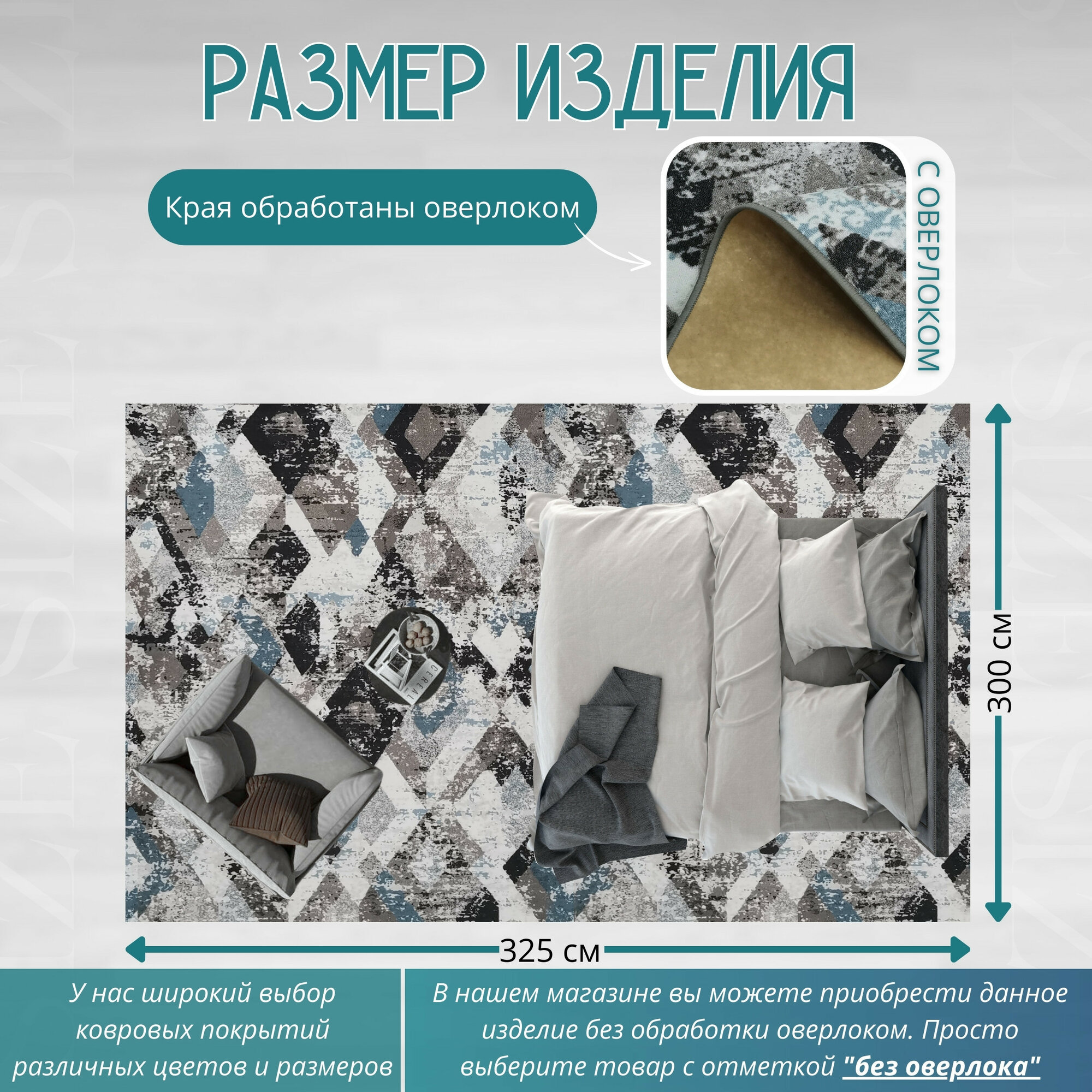 СохранитьКовролин метражом 3х3,25 м, гладкий "Ромб", серо-синий с оверлоком интересное: