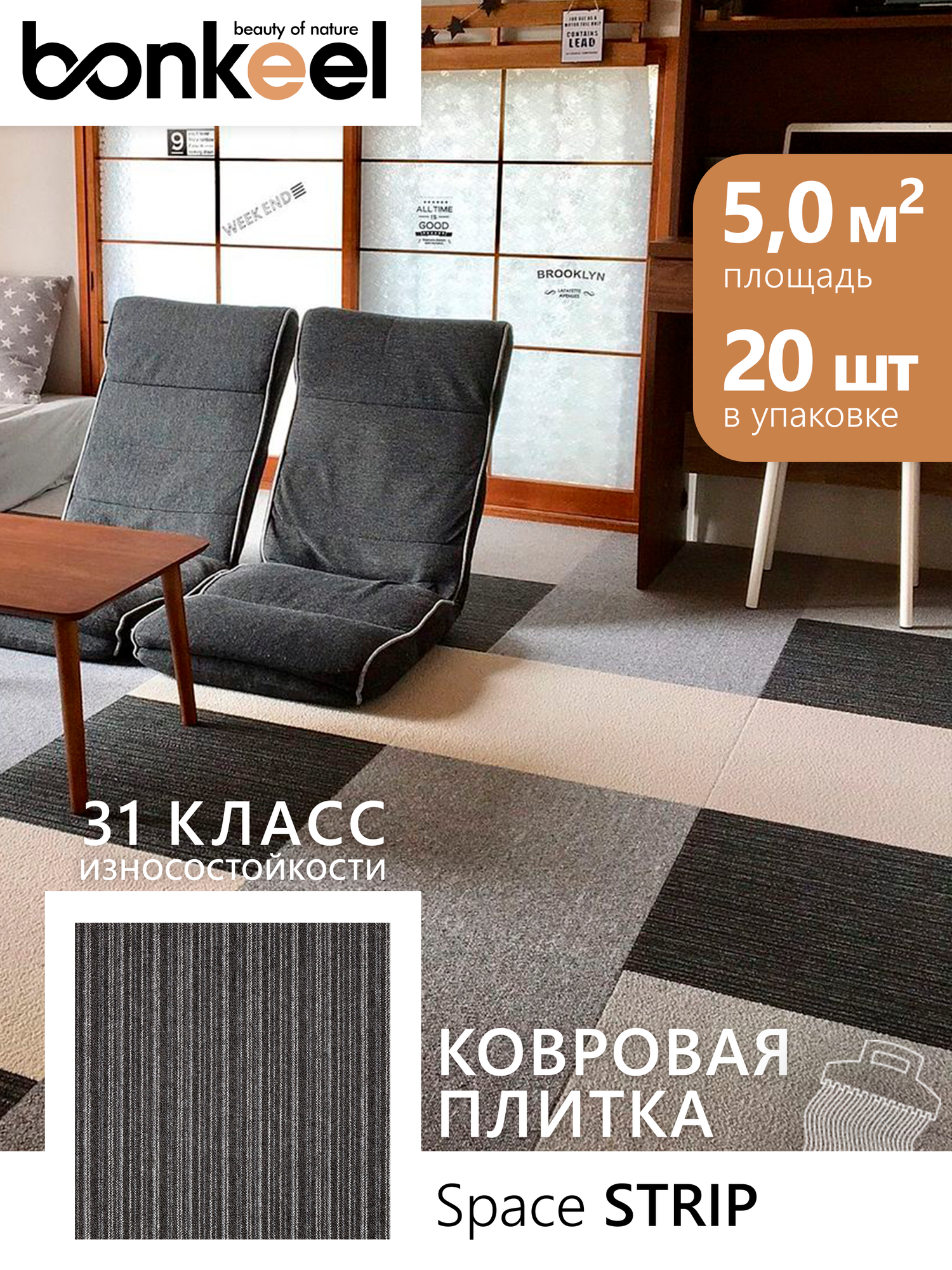 Плитка ковровая коммерческая Bonkeel Space Strip серая, 50х50, 5м2/уп интересное: