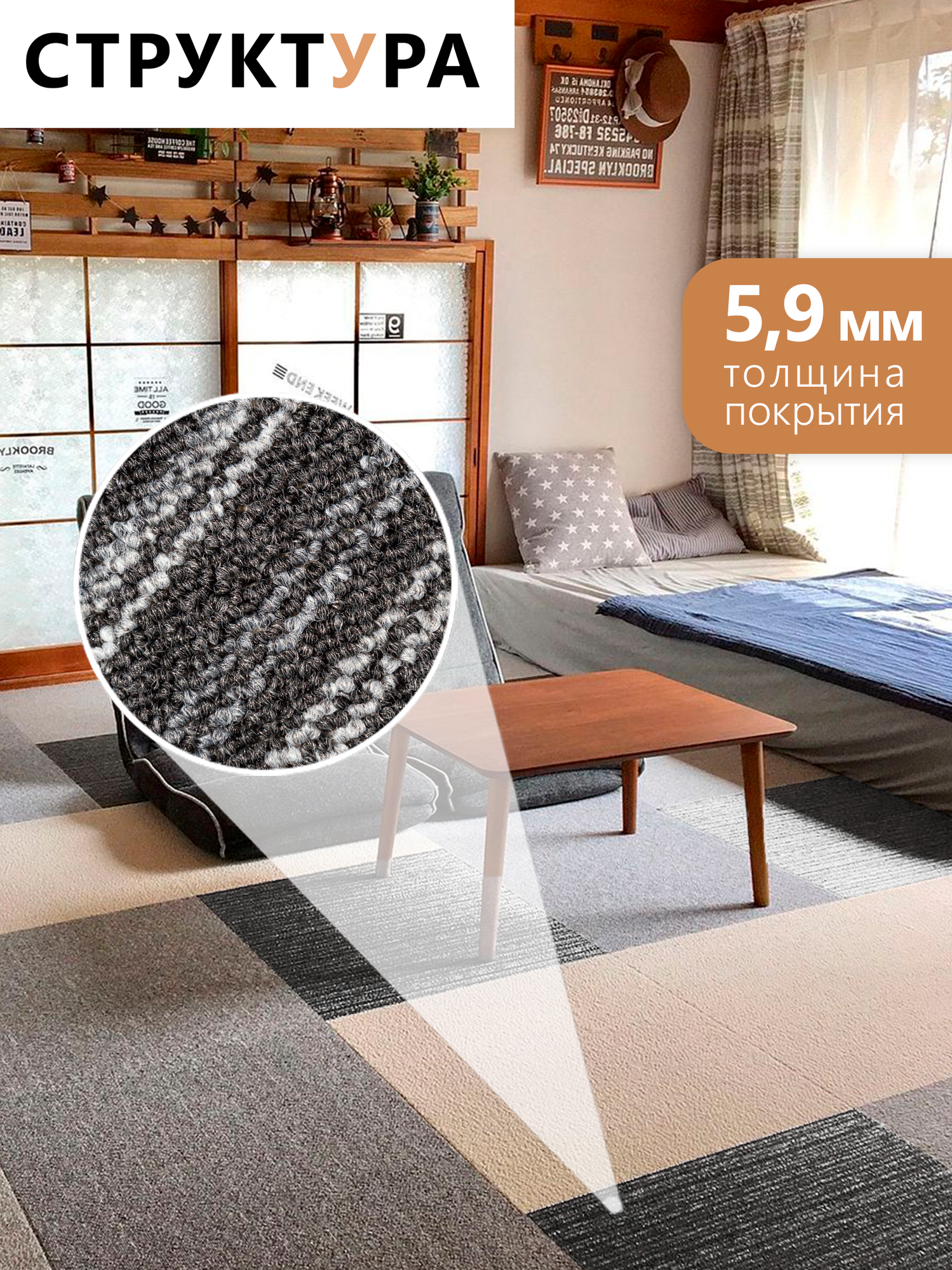 Ковролин на пол метражом 3х3 м. LEVMA DE 93-4809786