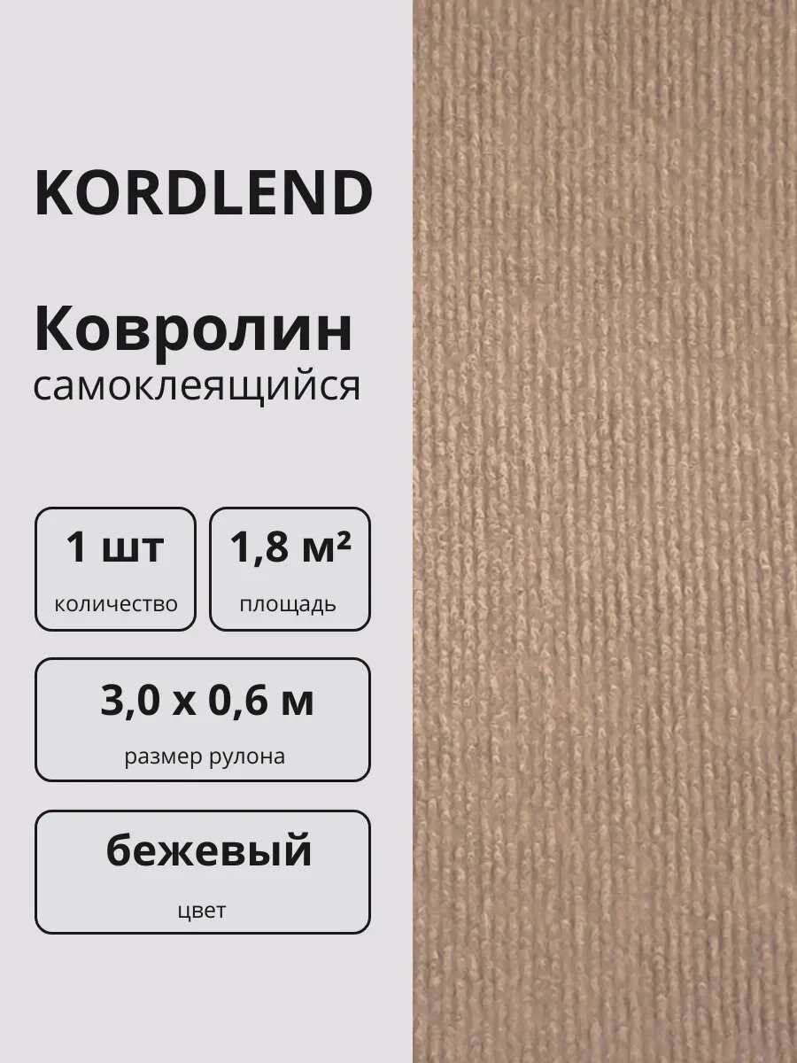 Ковролин, самоклеящийся для пола 3 м x 0.6 м, бежевый, 2 шт./уп.