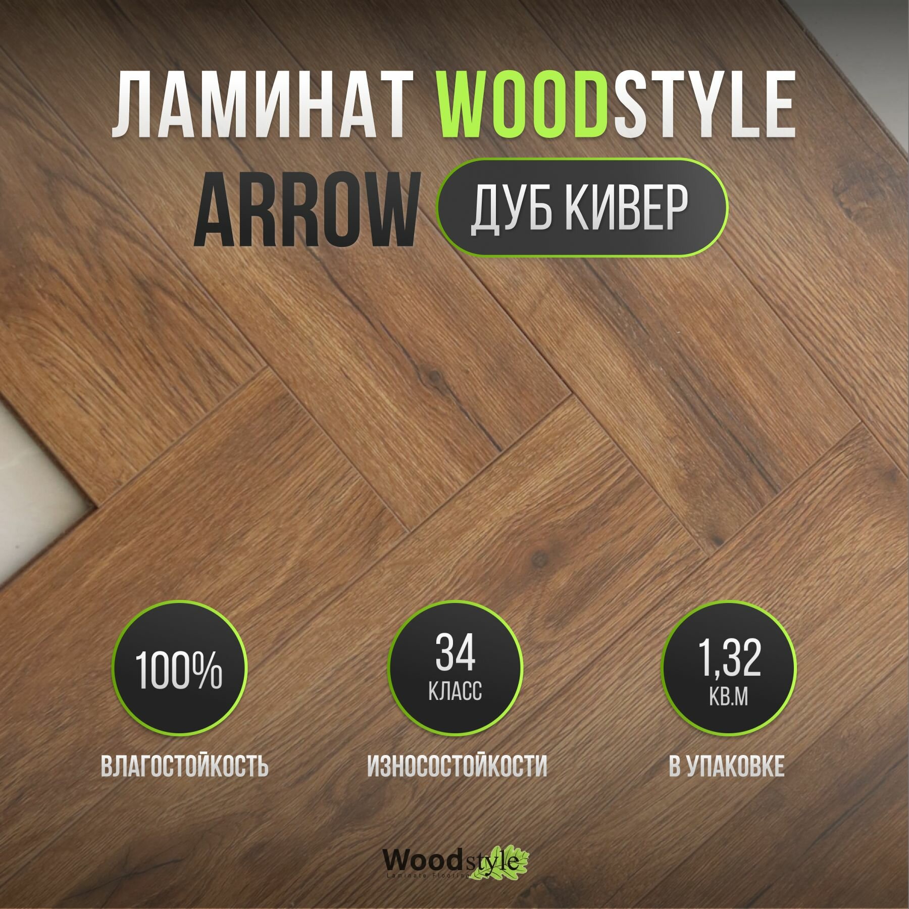 Ламинат напольный влагостойкий WOODSTYLE ARROW 34 класс, 12 мм с фаской, ДУБ лонгбоу 100