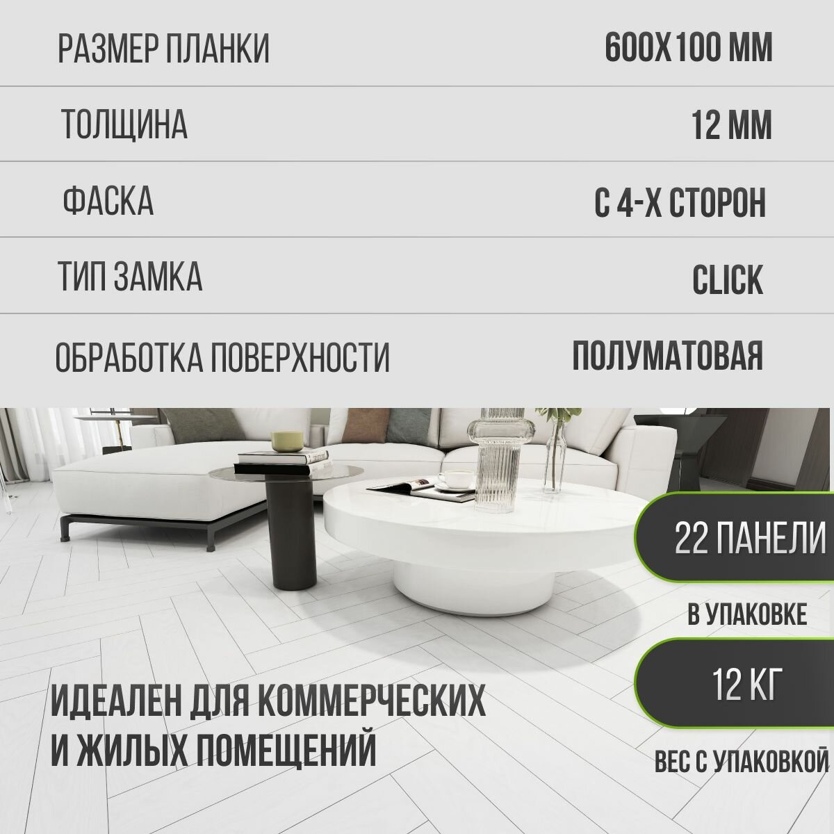 Ламинат напольный влагостойкий WOODSTYLE ARROW 34 класс, толщина 12 мм с фаской, ДУБ леголас 102
