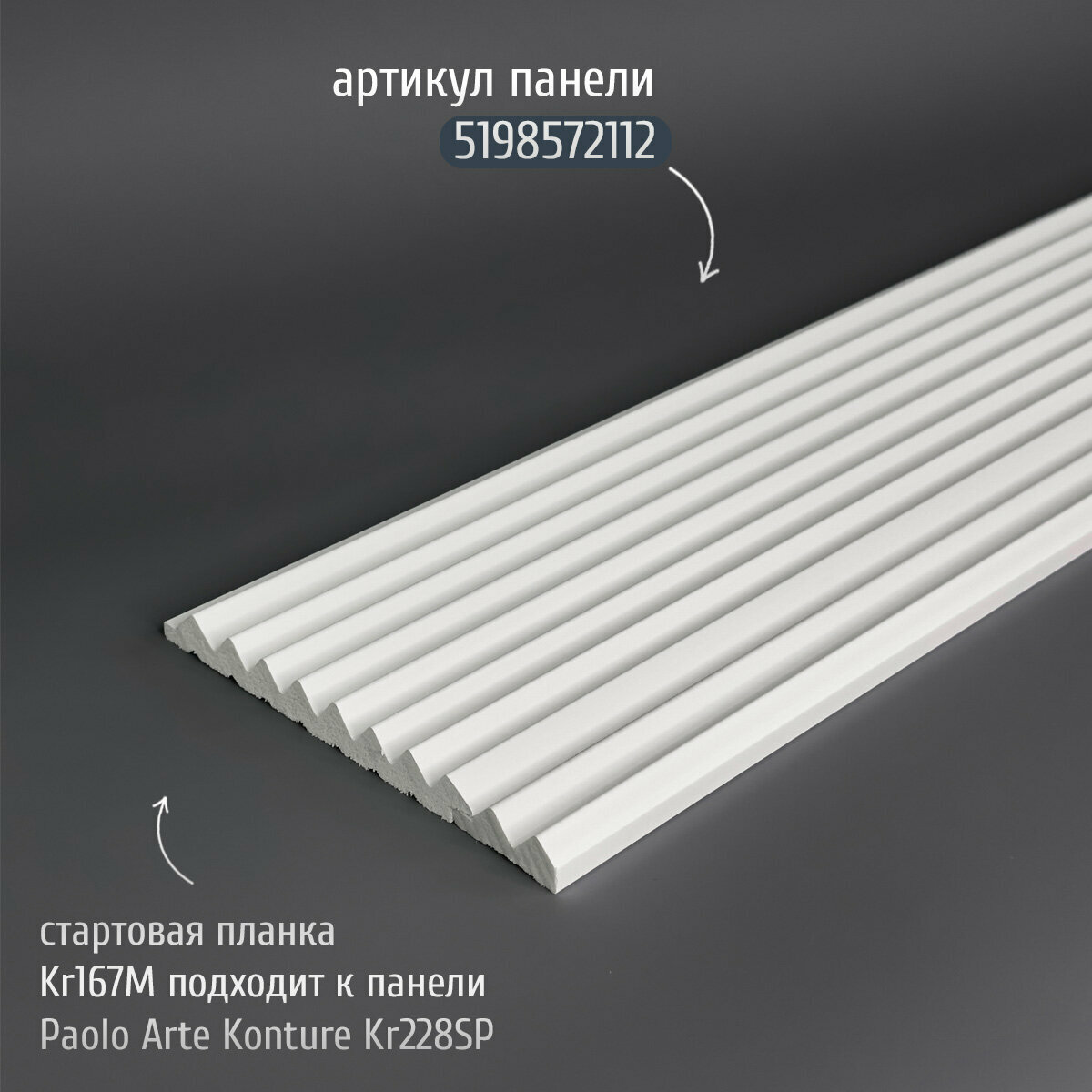 Стартовая планка (начальная рейка) для панелей Paolo Arte Konture (Паоло Арте Контур), 42х12х2700 мм, Kr168M белый