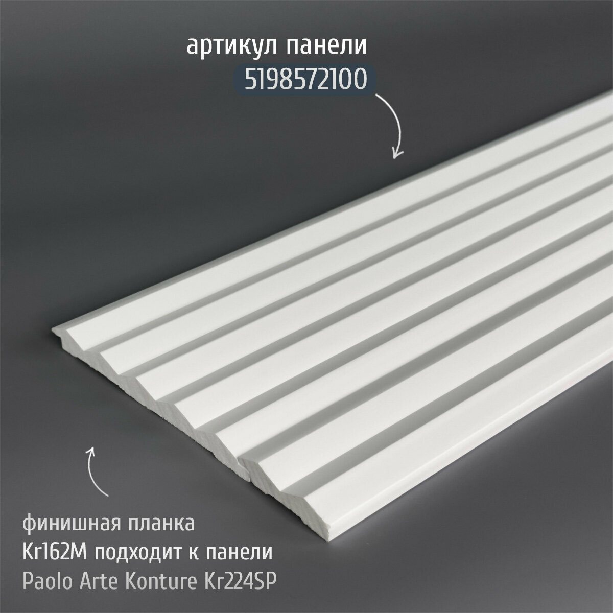 СохранитьФинишная планка (завершающая рейка) для панелей Paolo Arte Konture (Паоло Арте Контур), 49х12х2700 мм, Kr162M белый интересное: