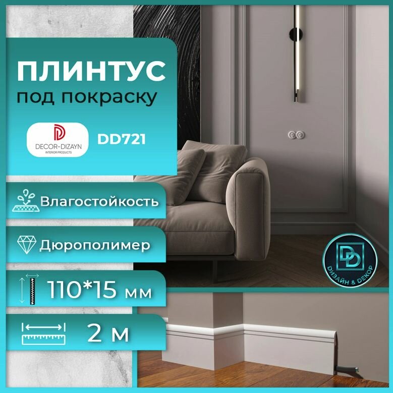 Плинтус напольный, под покраску, дюрополимер Decor-Dizayn (Декор-Дизайн) DD721, размер 110х15x2000мм интересное: