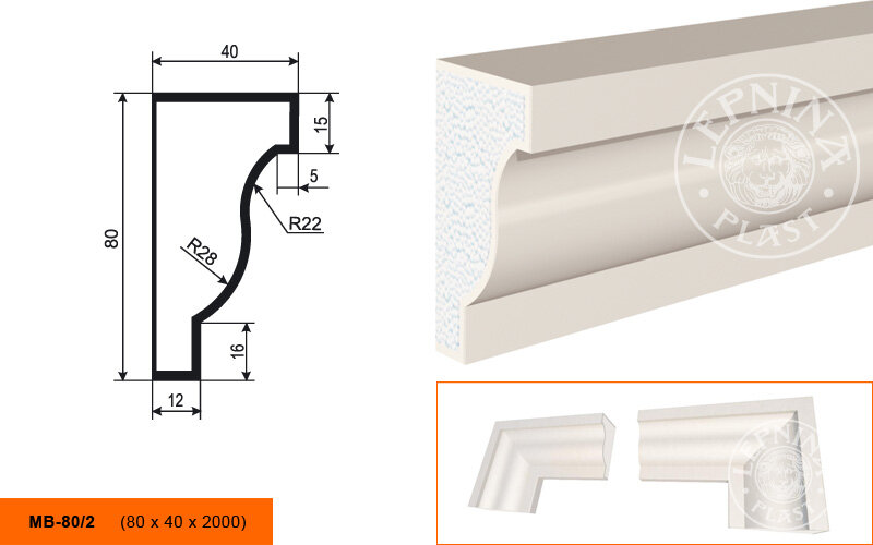 Молдинг Lepninaplast МВ-80/2, фасадный, армированный, пенополистирол ПСБ-С-35, 2 метра, 1 шт. интересное: