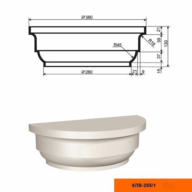 Основание фасадной полуколонны Lepninaplast КЛВ-255/4 HALF, пенополистирол ПСБ-С-35, армированный, под покраску интересное: