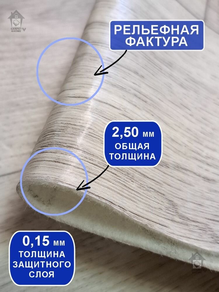 Линолеум TEXTURA "Ruza", бытовой, светло-бежевый, дерево, на отрез, 1x2.5м