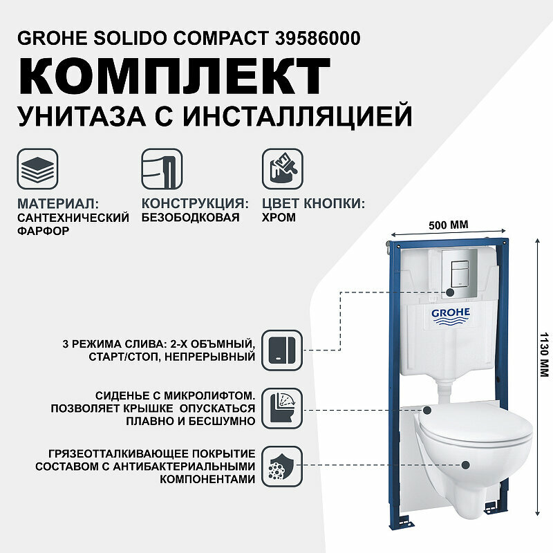 Комплект Grohe Solido Инсталляция 39586000 с унитазом 39427000