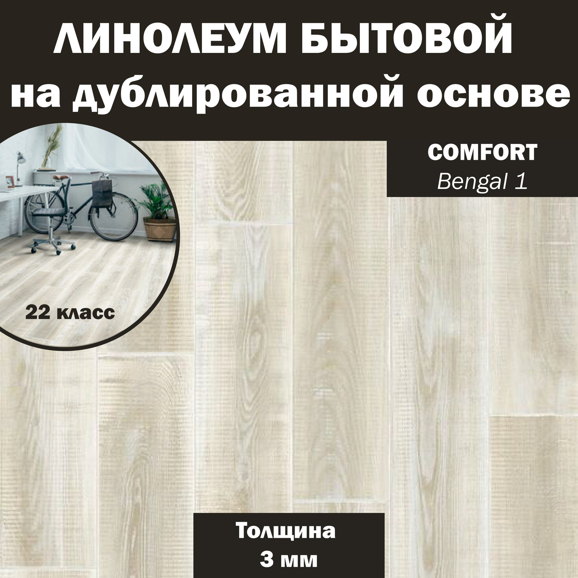 СохранитьЛинолеум бытовой Синтерос Comfort Bengal 1 светлый 6*3 м (3мм) интересное: