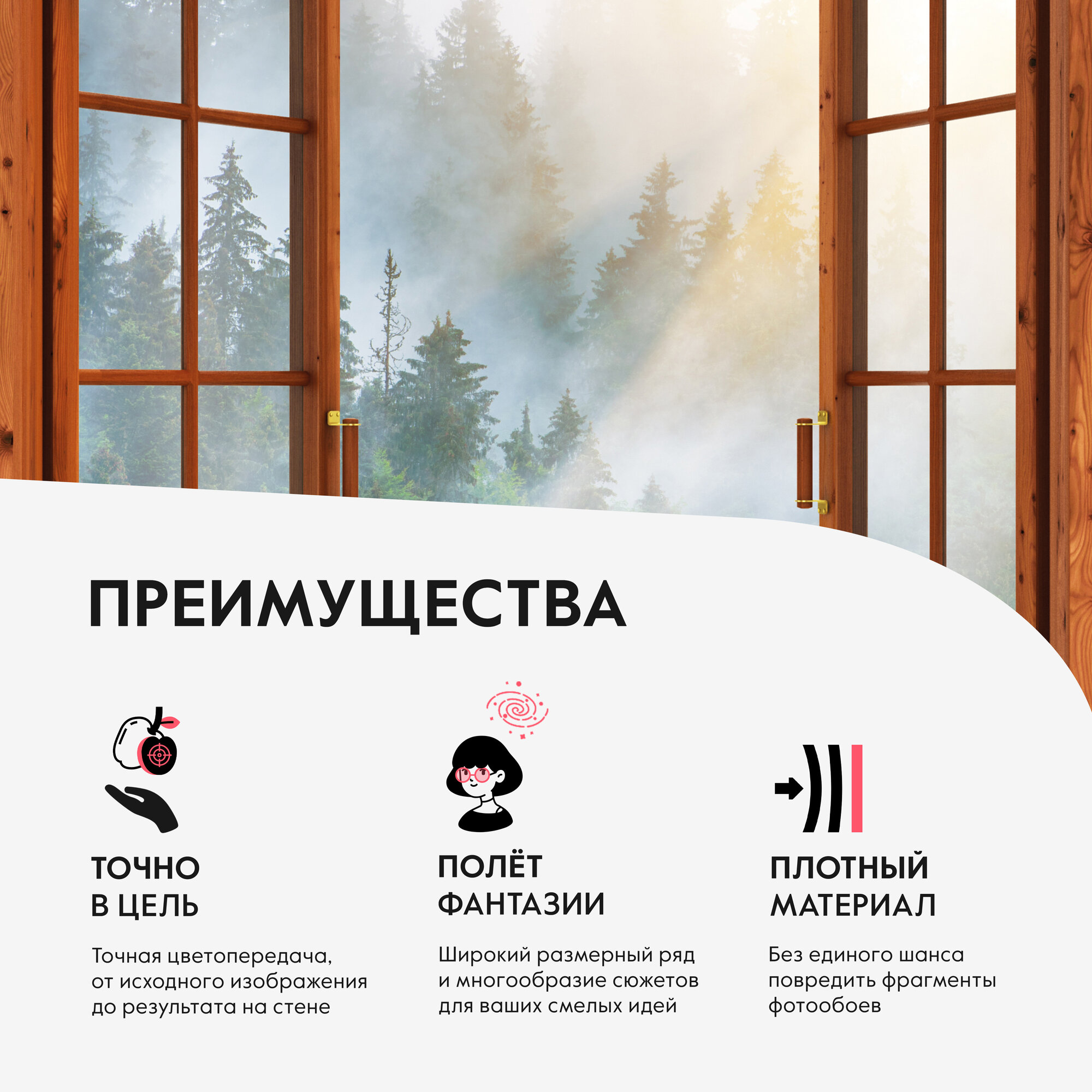 СохранитьФотообои Postermarket "Окно на туманный лес" бумажные, 119х140 см интересное: