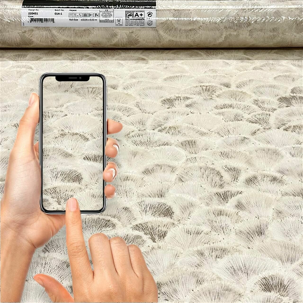 Обои Bn International Fiore BN 220450 , серые с принтом орнамент веер, 53 см*10,05м, Нидерланды