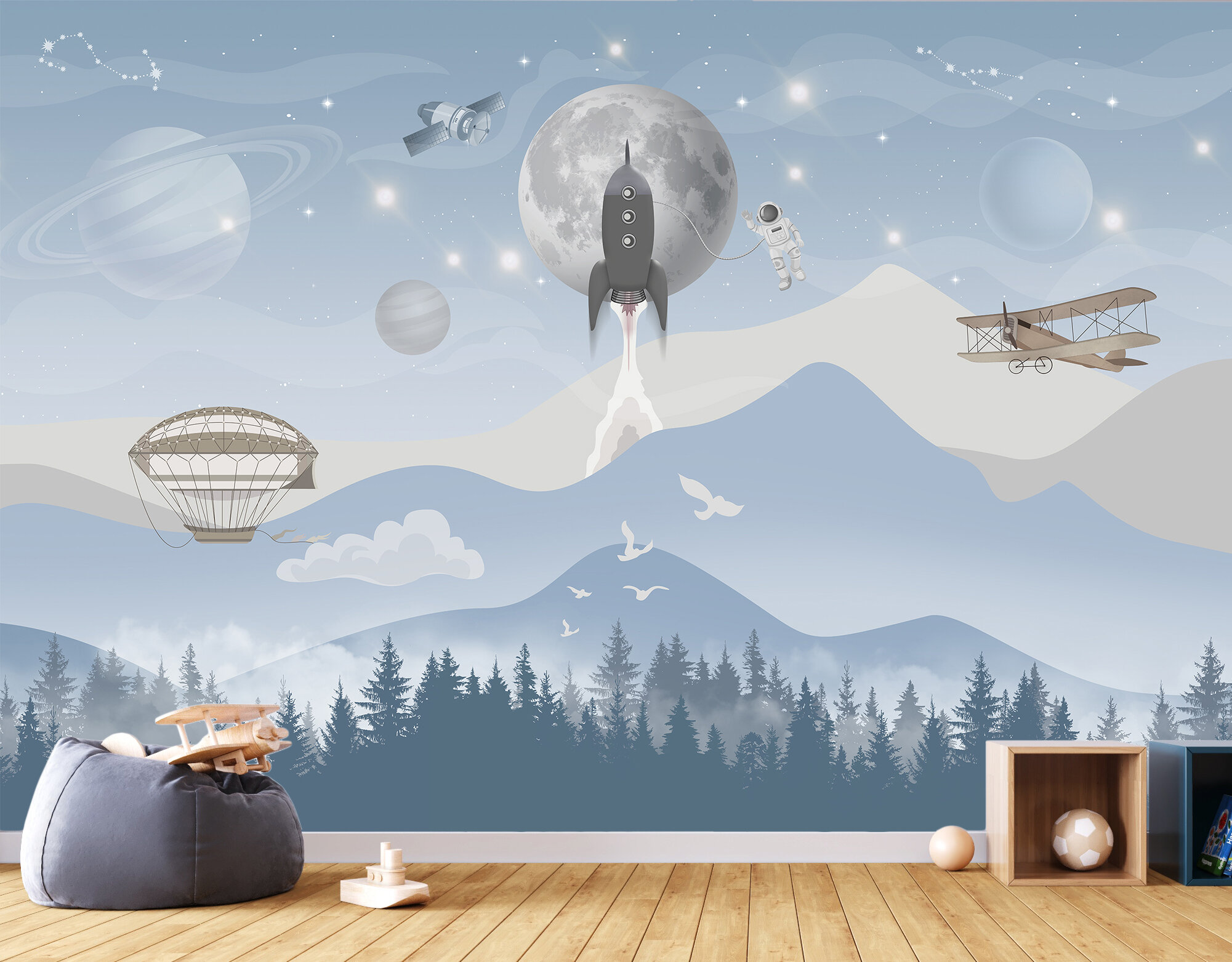 Фотообои на стену флизелиновые 3d Детские Для мальчиков Горы Самолет 200х270 см Bartonwall K083