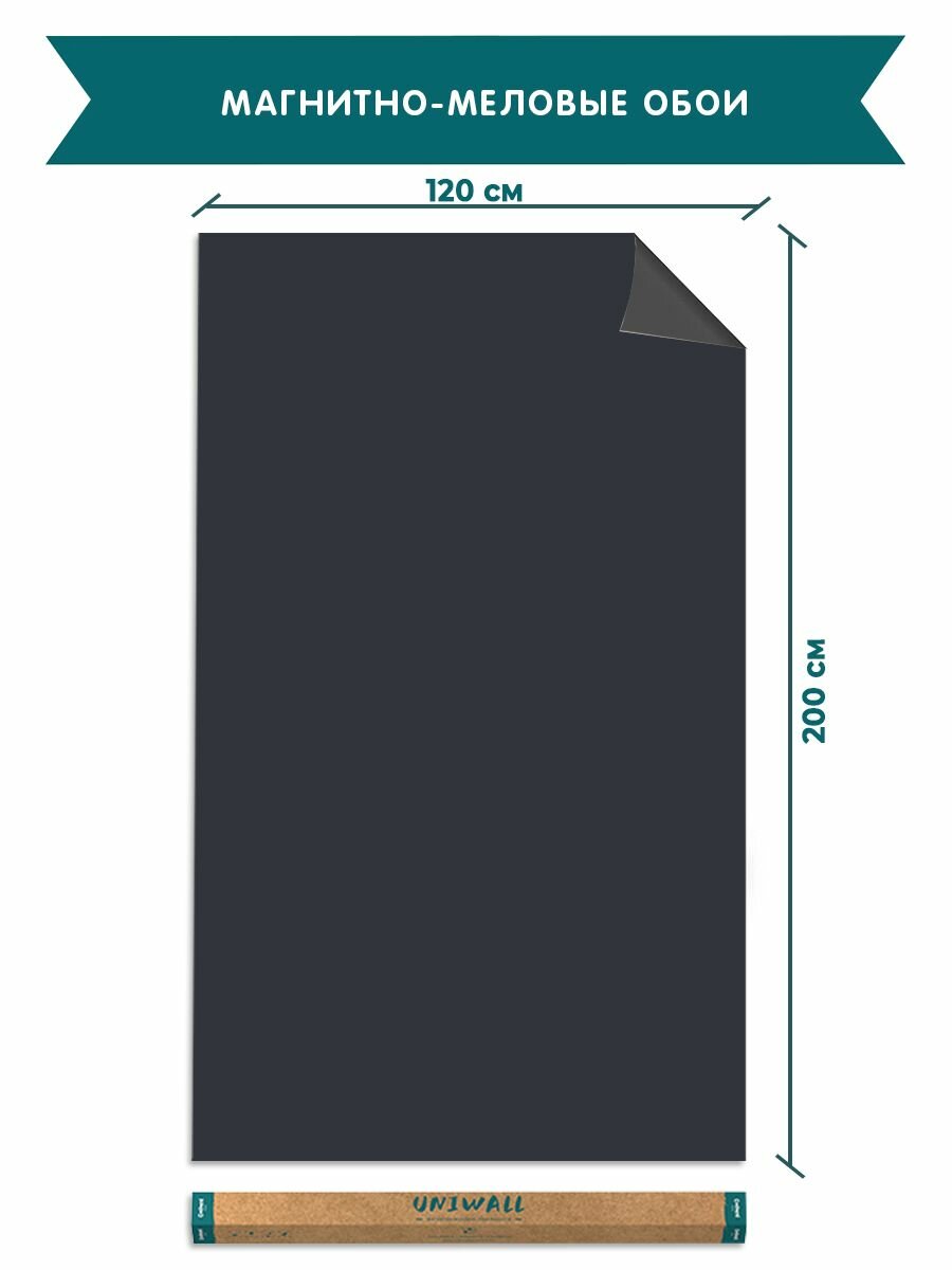 Купить Магнитные меловые обои "UNIWALL" 120 х200 см, черный, обои для детской комнаты/для кухни и для офиса