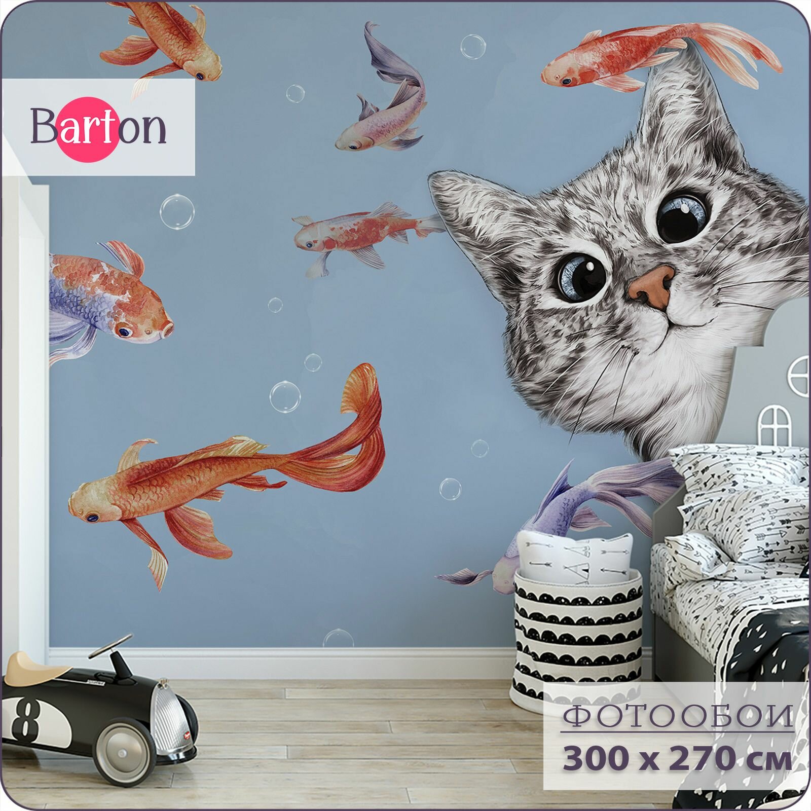 Купить Фотообои на стену флизелиновые 3d Детские Котенок Рыбки 300х270 см Bartonwall K299-C