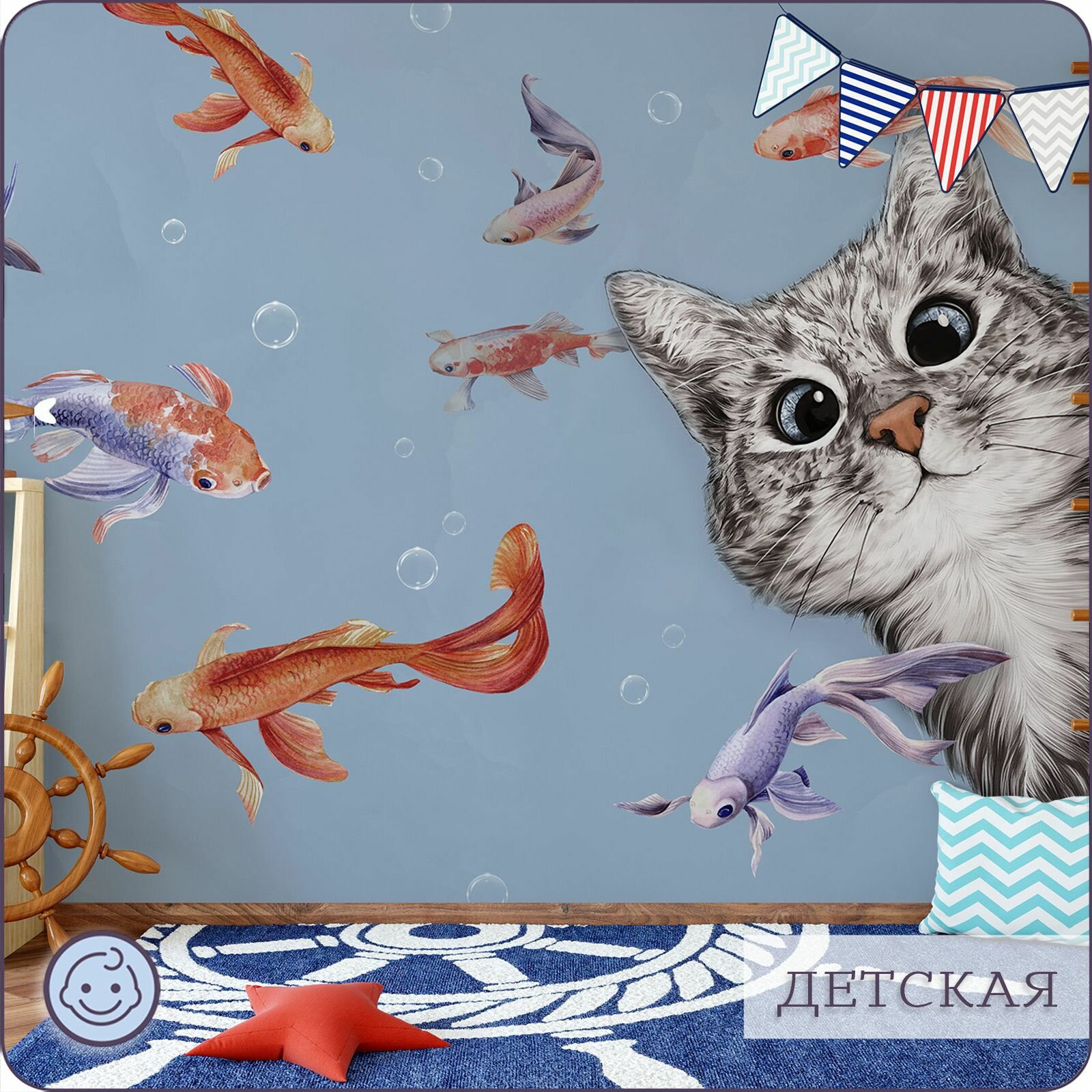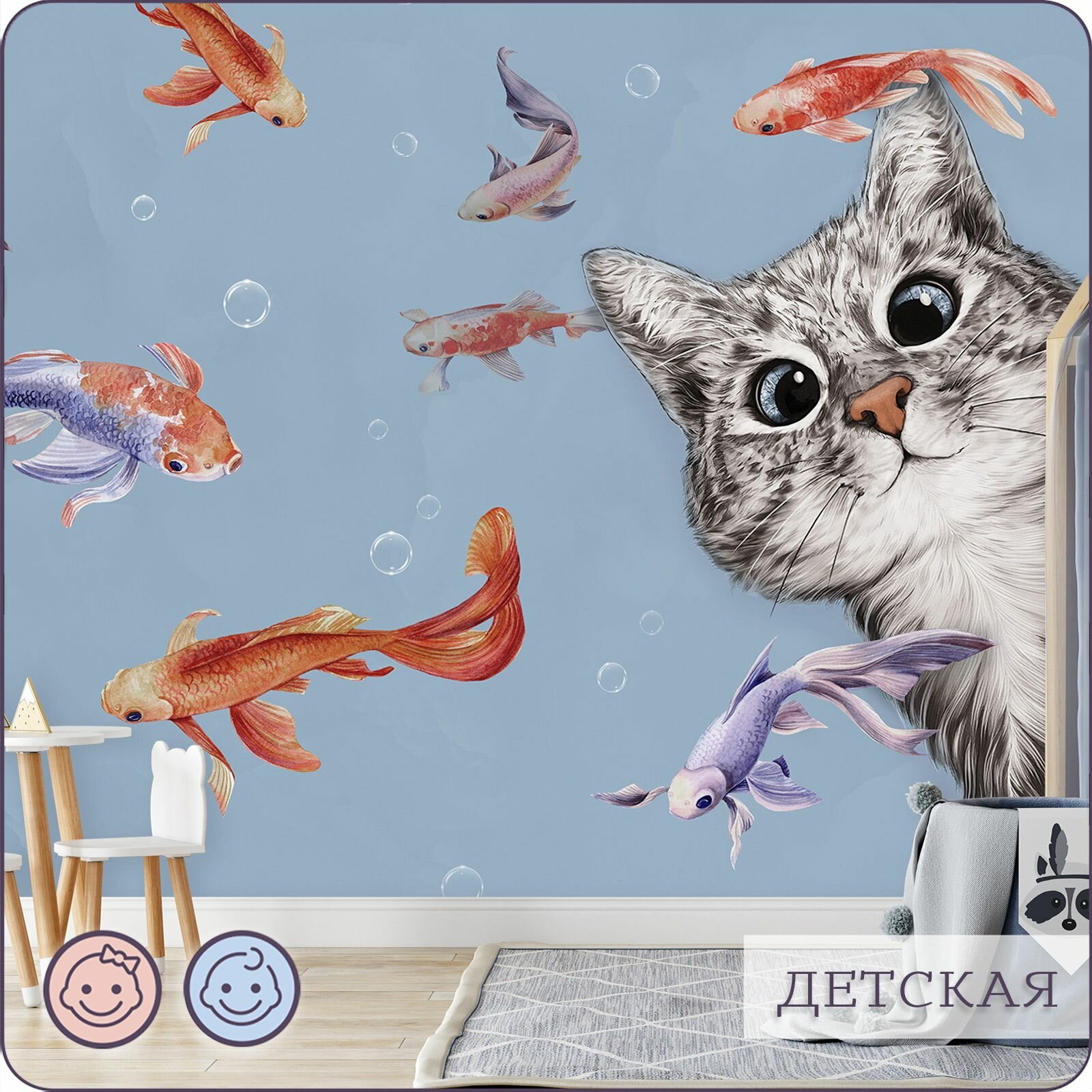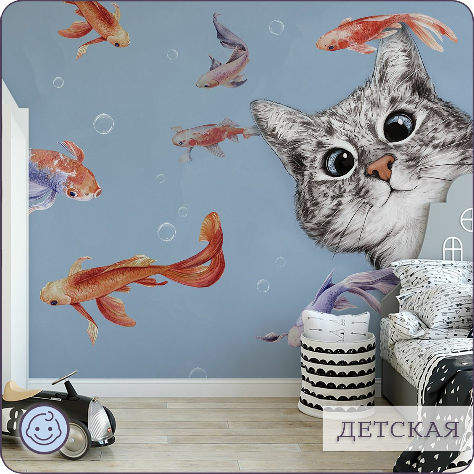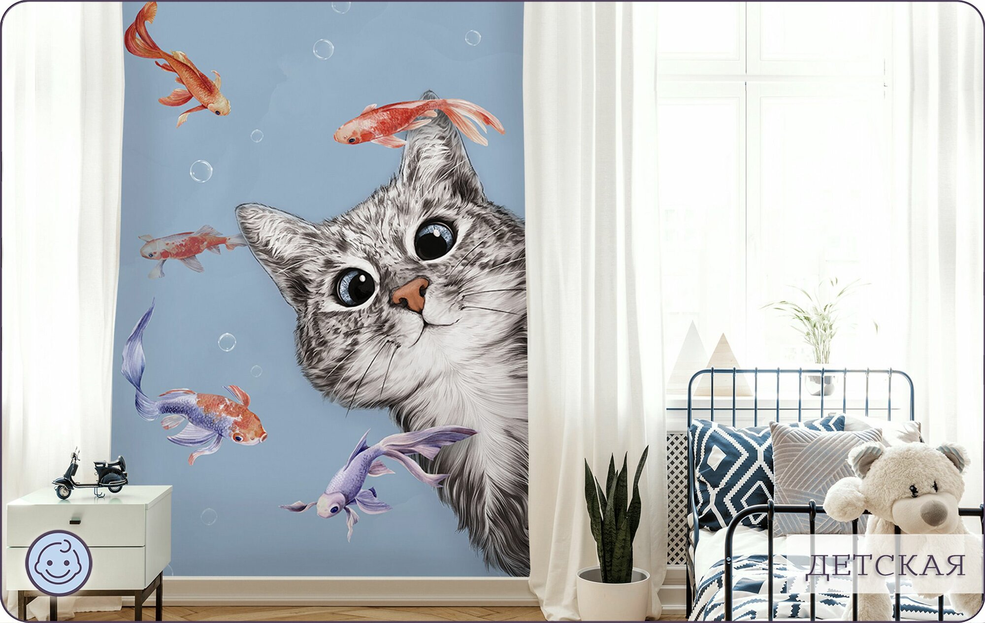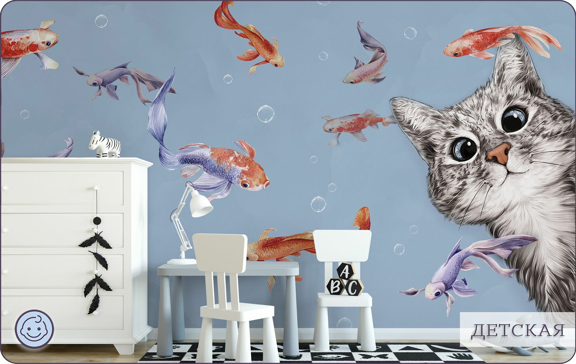 Купить Фотообои на стену флизелиновые 3d Детские Котенок Рыбки 500х270 см Bartonwall K299-C