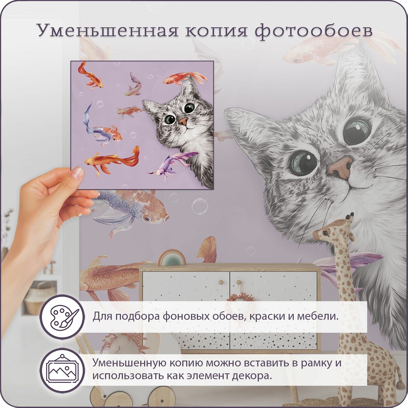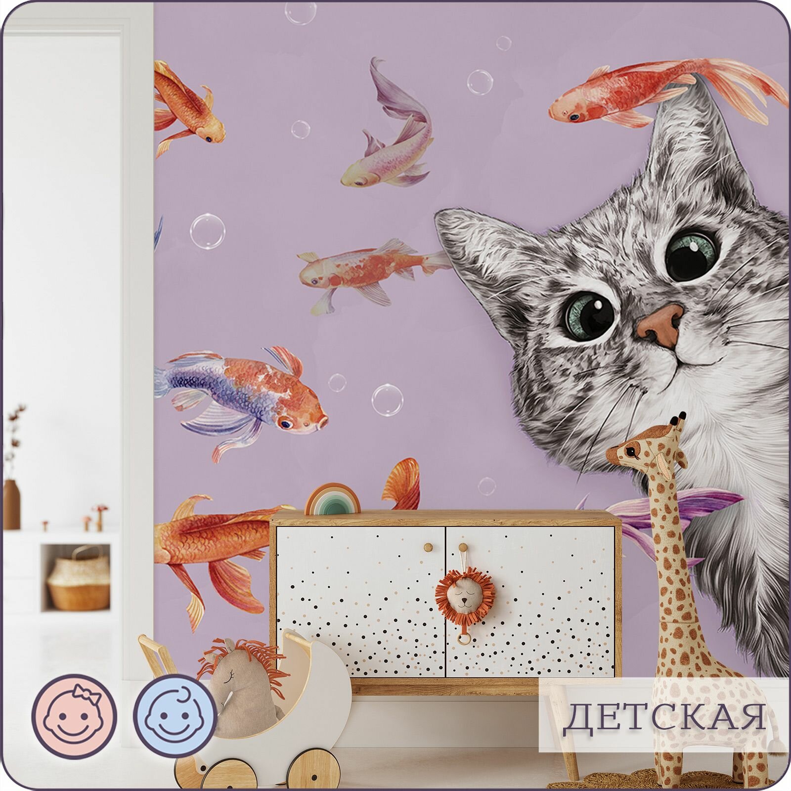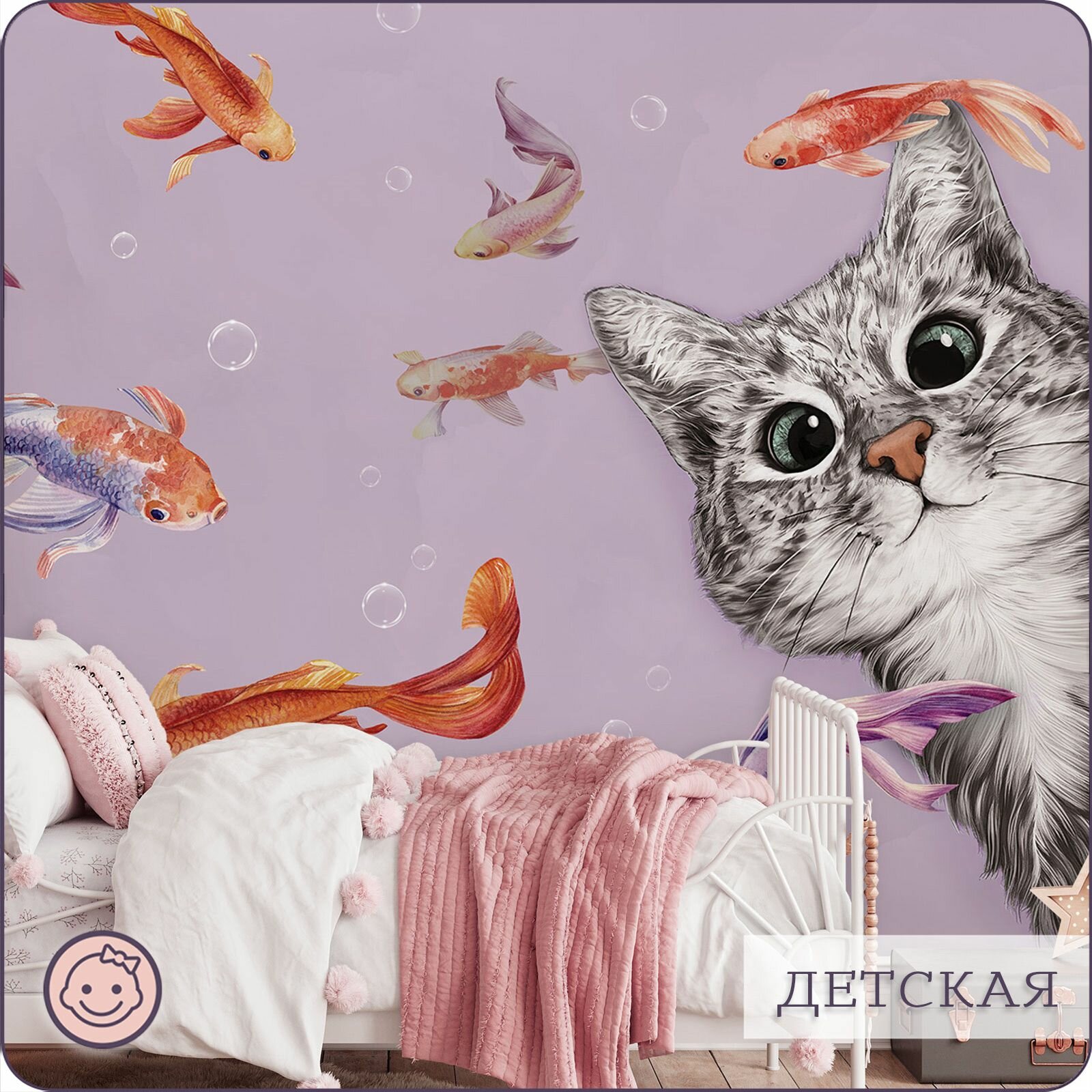Купить Фотообои на стену флизелиновые 3d Детские Котенок Рыбки 500х270 см Bartonwall K299
