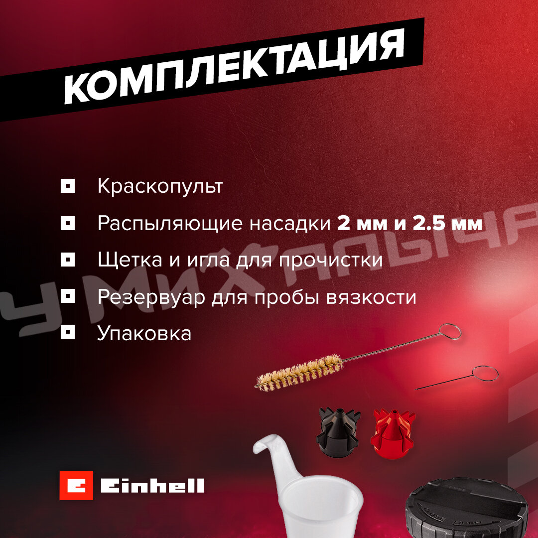 | Комплектация | 2 сопла (2.5мм, 2 мм), щетка для прочистки, игла для прочистки форсунки, ёмкость для определения вязкости |