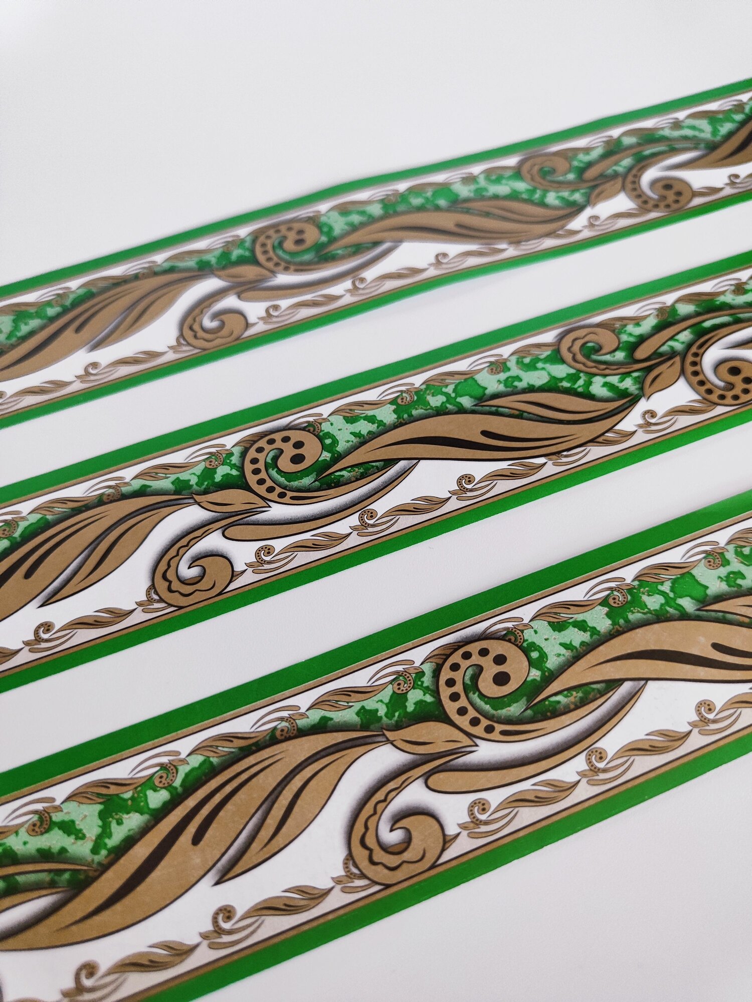 Бордюр для обоев (кант, филенка, фриз, молдинг, плинтус) бумажный цвет зеленый 9 см.