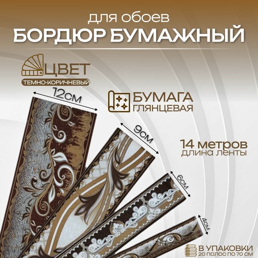 Бордюр для обоев (кант, филенка, фриз, молдинг, плинтус) бумажный цвет темно-коричневый 12 см.