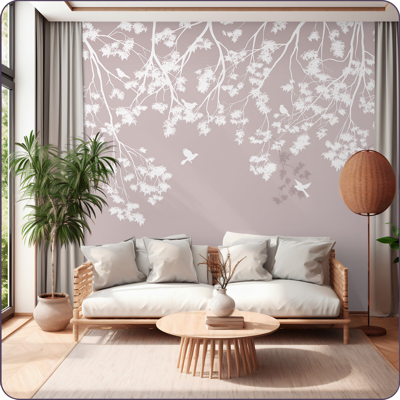 Фотообои на стену флизелиновые 3d Растения Птицы Дерево 300x270 см Bartonwall N165-P