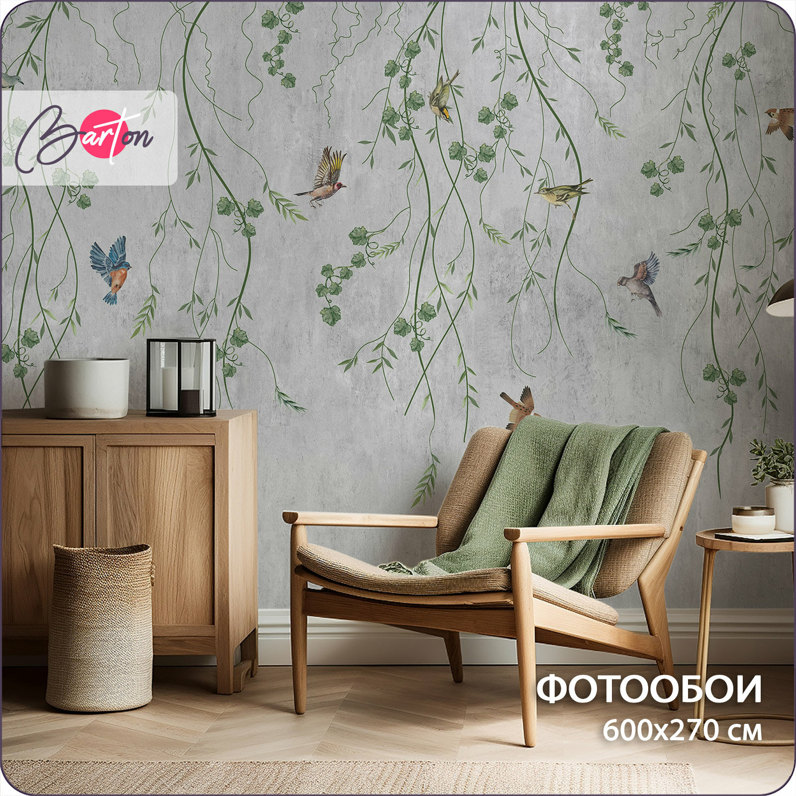 Купить Фотообои на стену флизелиновые 3d Растения Птицы 600х270 см Bartonwall N129-G