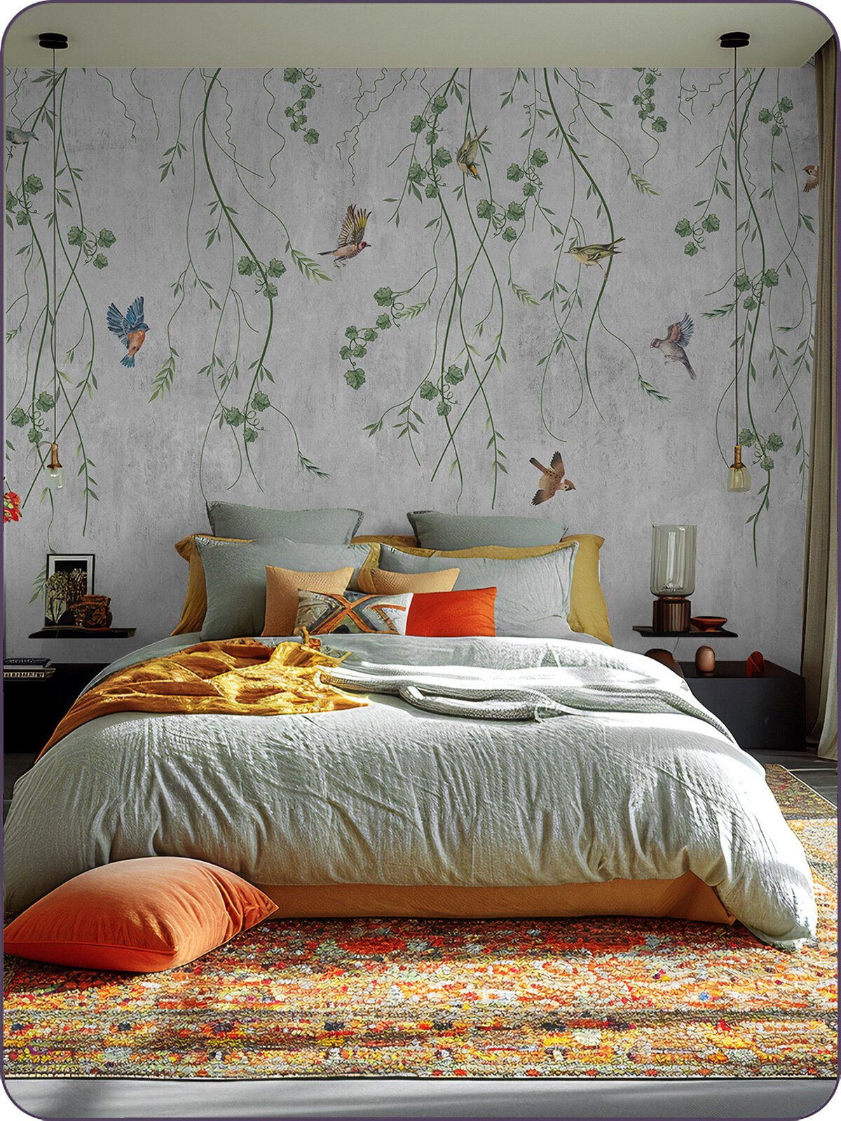 Фотообои на стену флизелиновые 3d Лофт Растения Птицы 200x270 см Bartonwall N129-B
