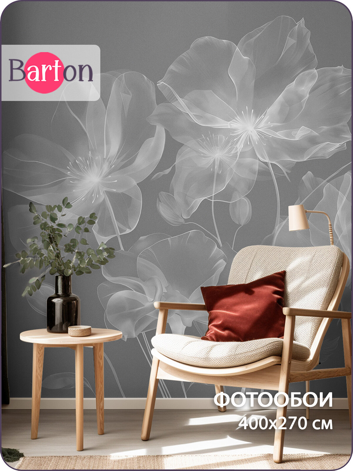 Купить Фотообои на стену флизелиновые 3d Цветы Акварель Силуэт 400х270 см Bartonwall F098-G