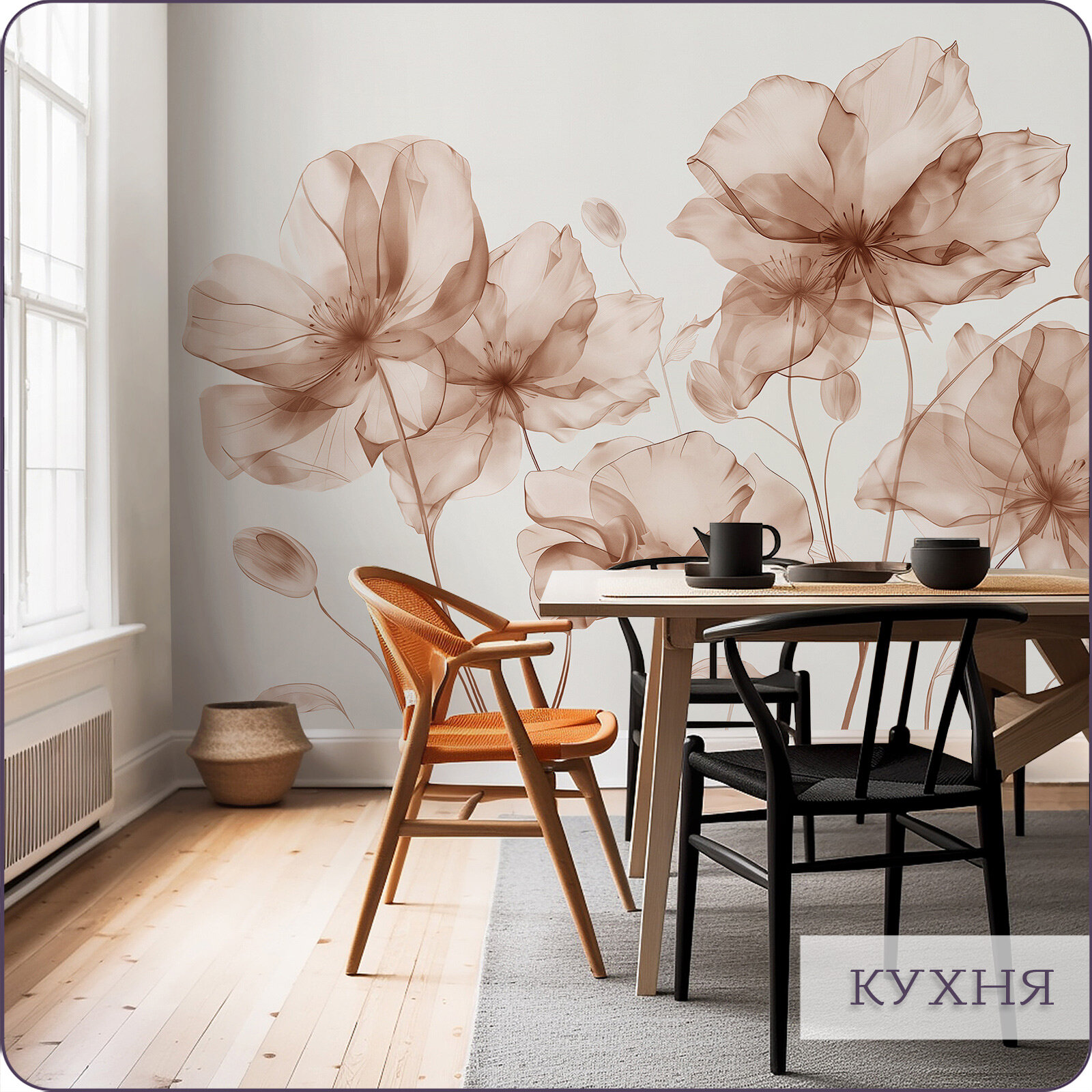 Купить Фотообои на стену флизелиновые 3d Цветы Акварель Силуэт 300х270 см Bartonwall F098-B
