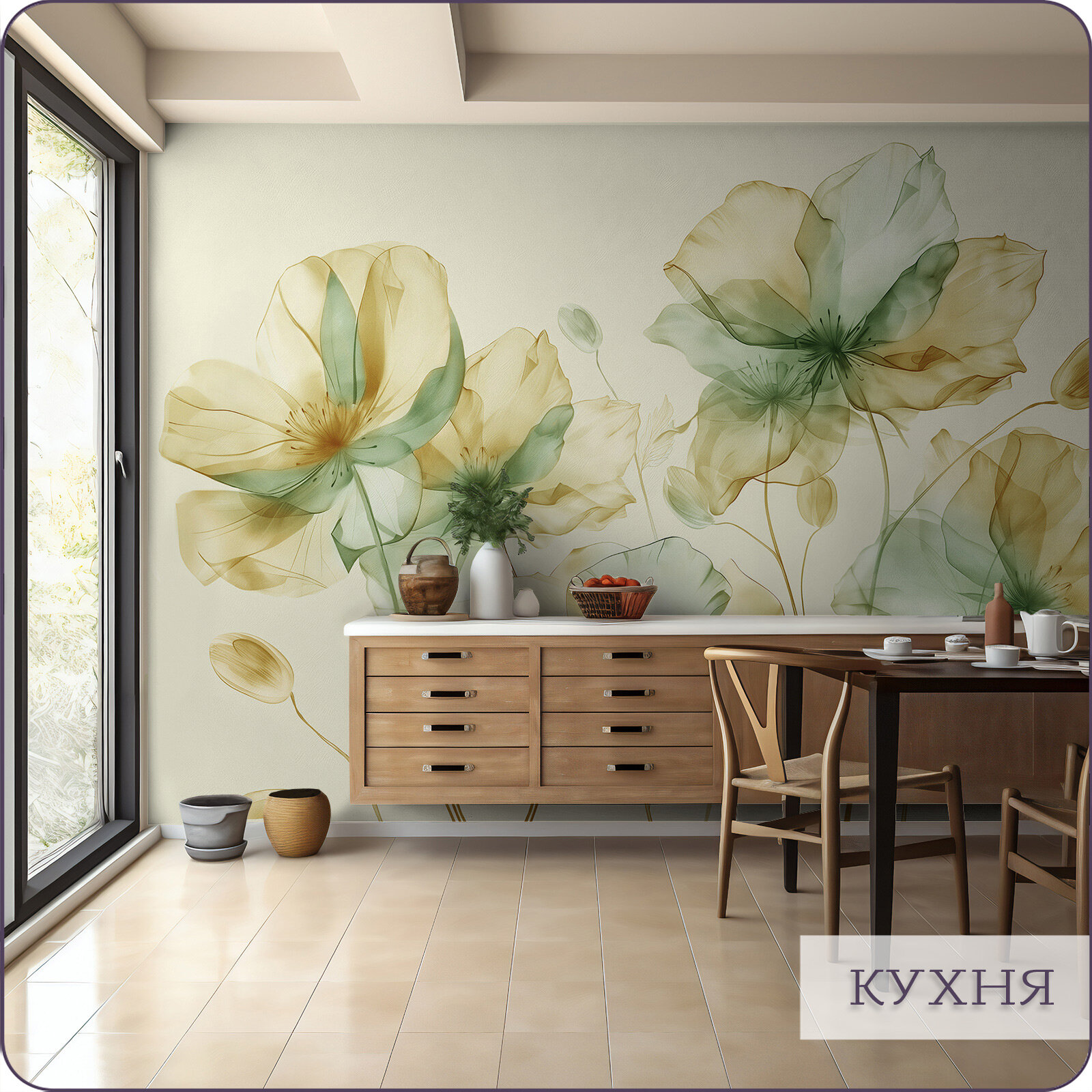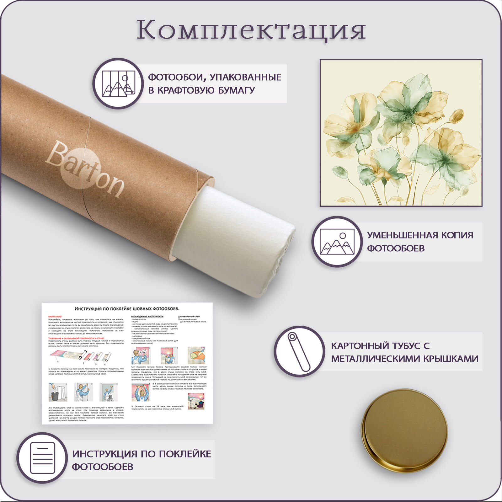 Купить Фотообои на стену флизелиновые 3d Цветы Акварель Силуэт 400х270 см Bartonwall F098-Z