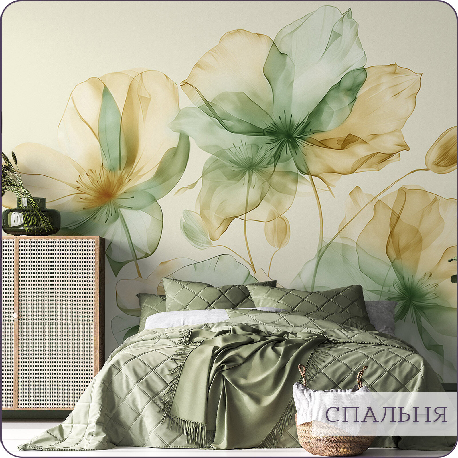 Фотообои на стену флизелиновые 3d Цветы Акварель Силуэт 200х270 см Bartonwall F098-R