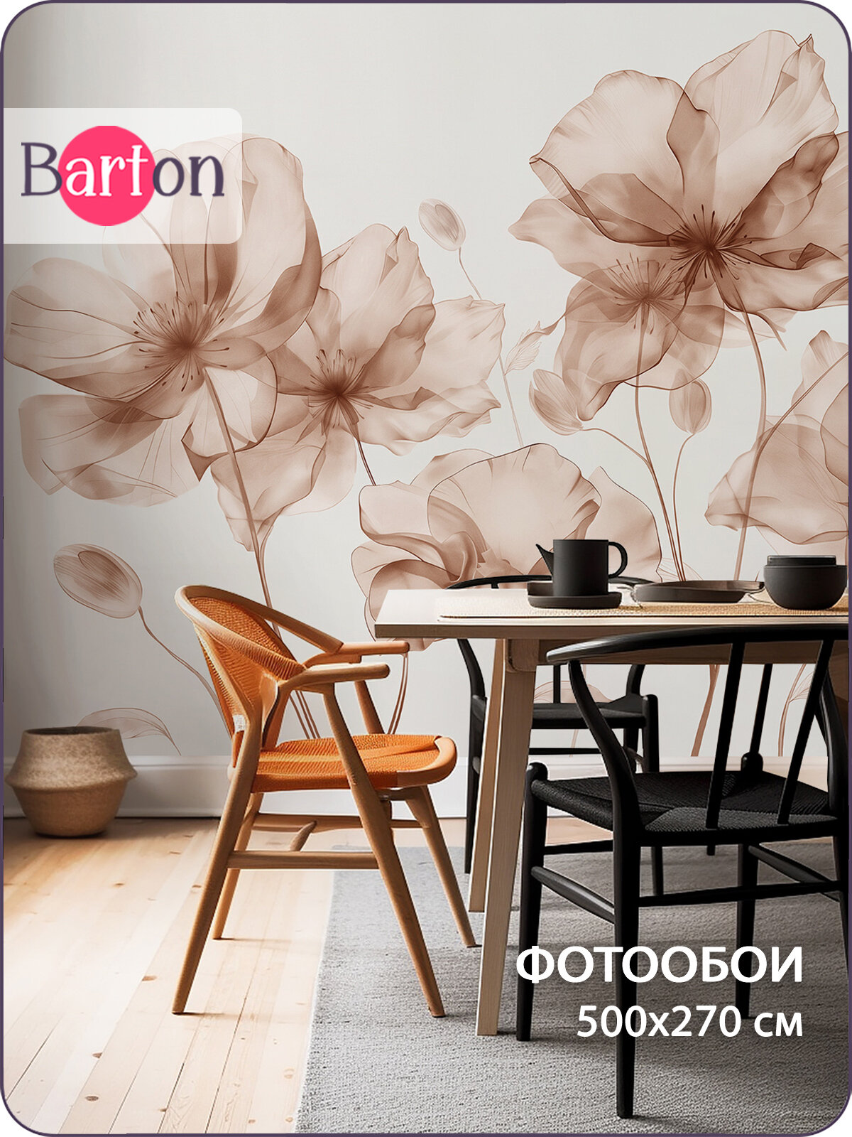 Купить Фотообои на стену флизелиновые 3d Цветы Акварель Силуэт 500х270 см Bartonwall F098-B