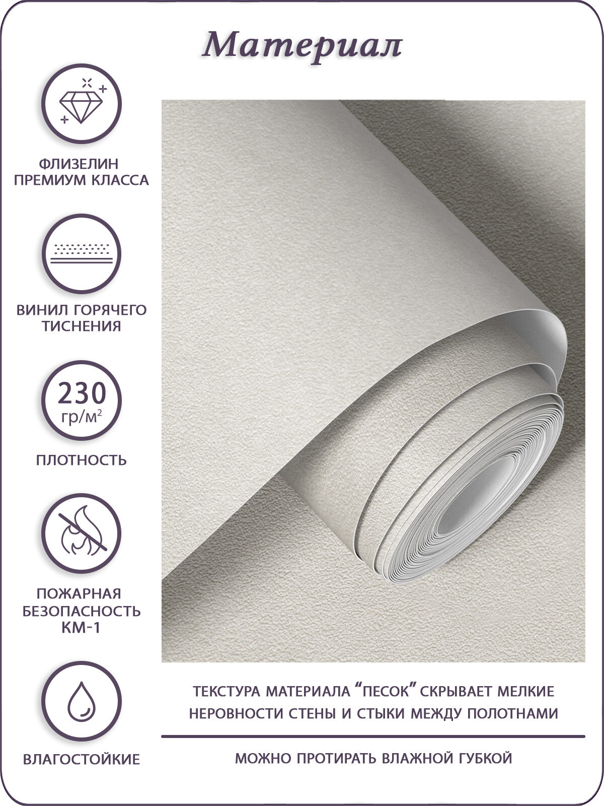 Обои флизелиновые 1,06х10м виниловые компаньоны "Песок" высокая плотность Пепельный Bartonwall P40
