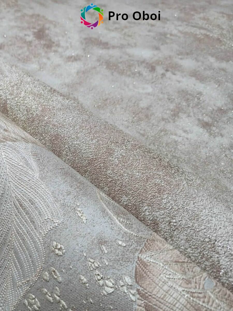 Gomel-FOX Обои вспененный винил на флизелине, бежевые листья, в спальню, в прихожую, в кухню,1.6х10м