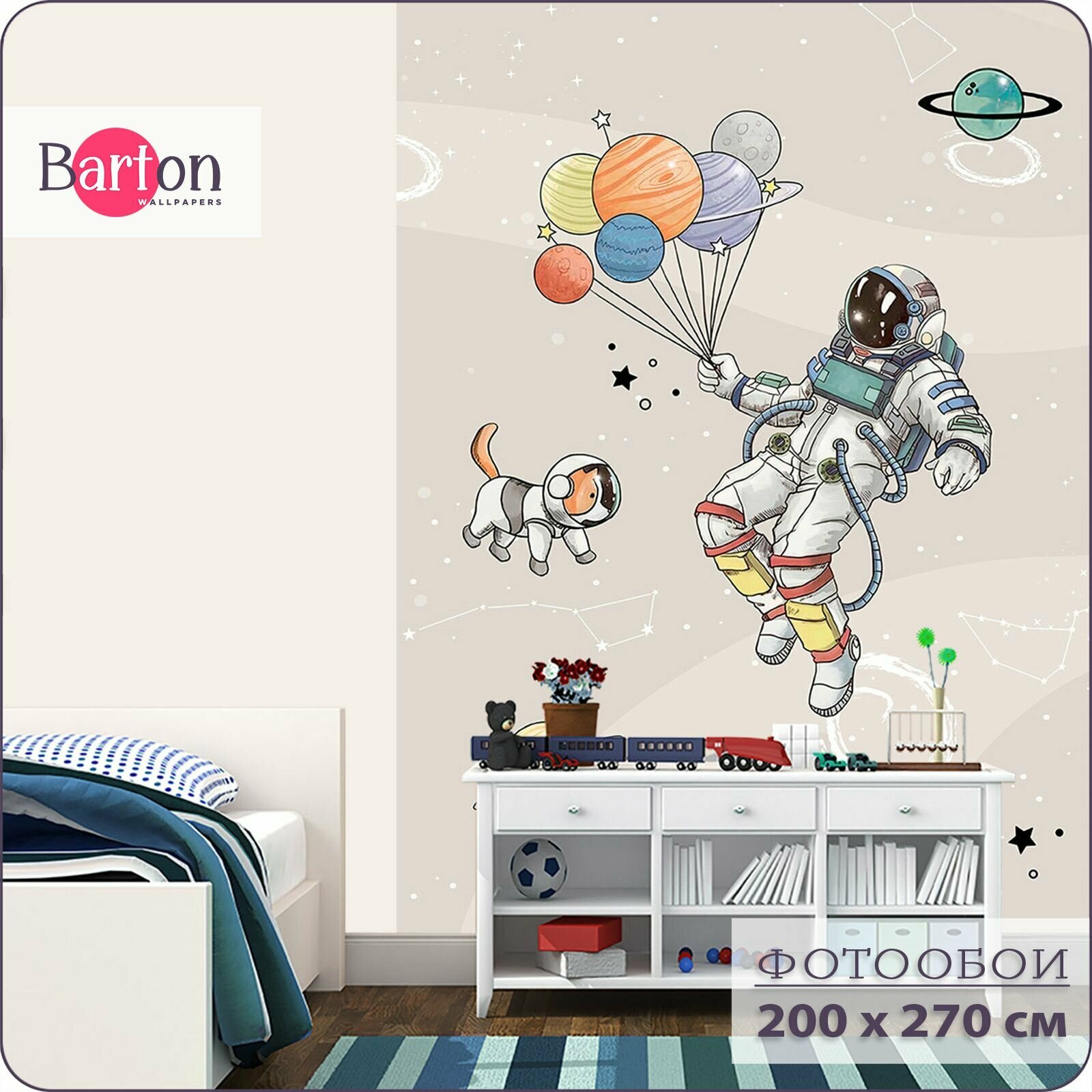 СохранитьФотообои на стену флизелиновые 3d Детские Для подростка Космонавт Космос 200х270 см Bartonwall K286-B интересное: