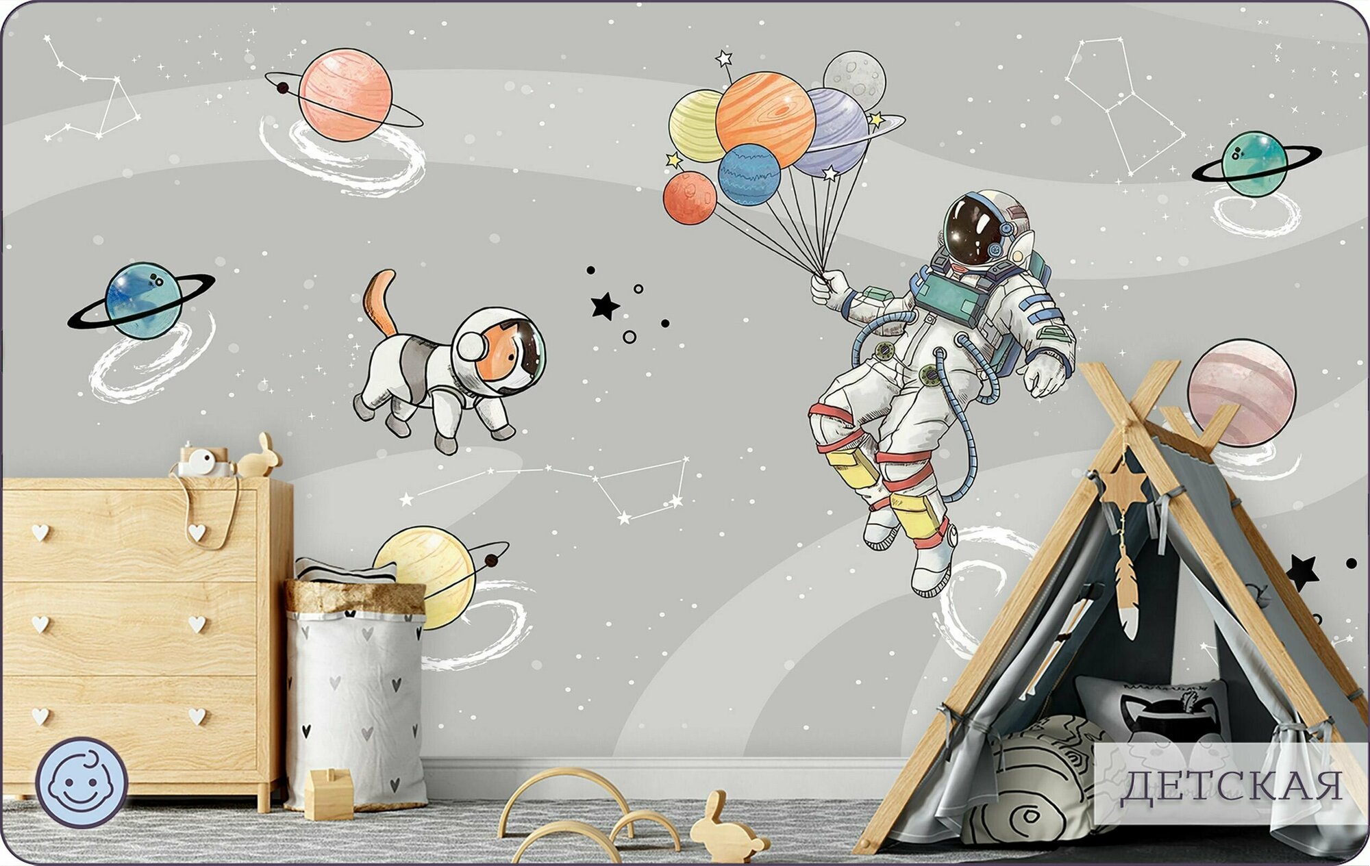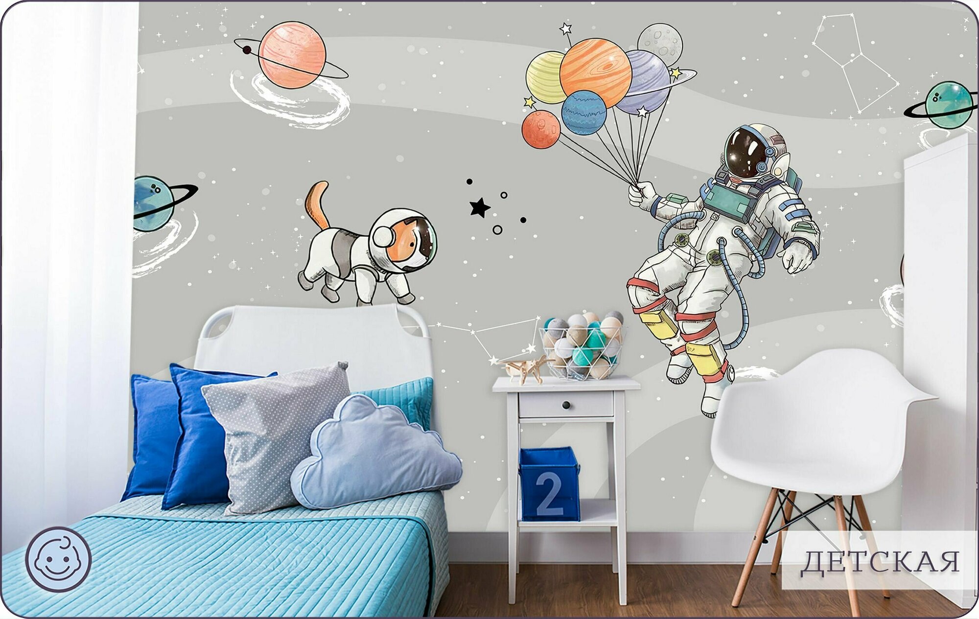 СохранитьФотообои на стену флизелиновые 3d Детские Для подростка Космонавт Космос 200х270 см Bartonwall K286-G интересное: