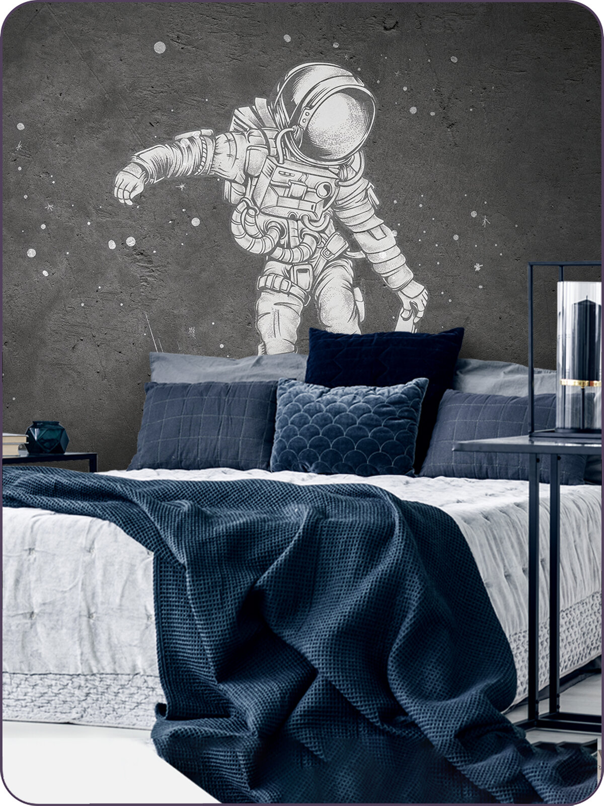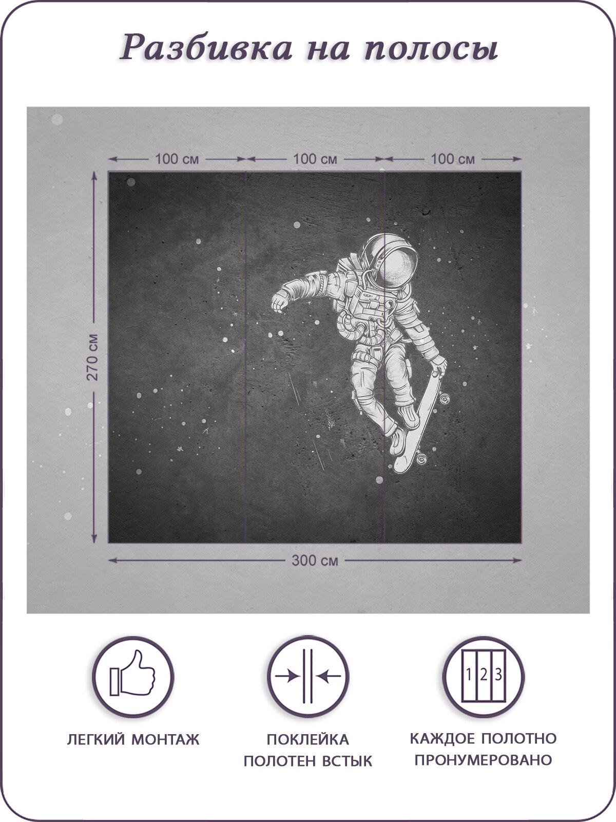 СохранитьФотообои на стену флизелиновые 3d Для подростка Лофт Космонавт на скейте 300х270 см Bartonwall M081 интересное: