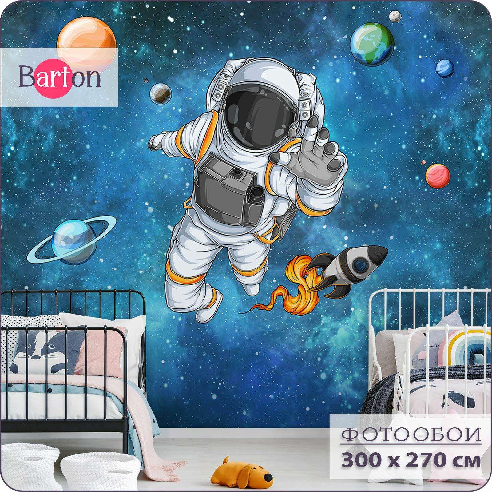СохранитьФотообои на стену флизелиновые 3d Детские Для подростка Космонавт Космос 300х270 см Bartonwall K301-C интересное: