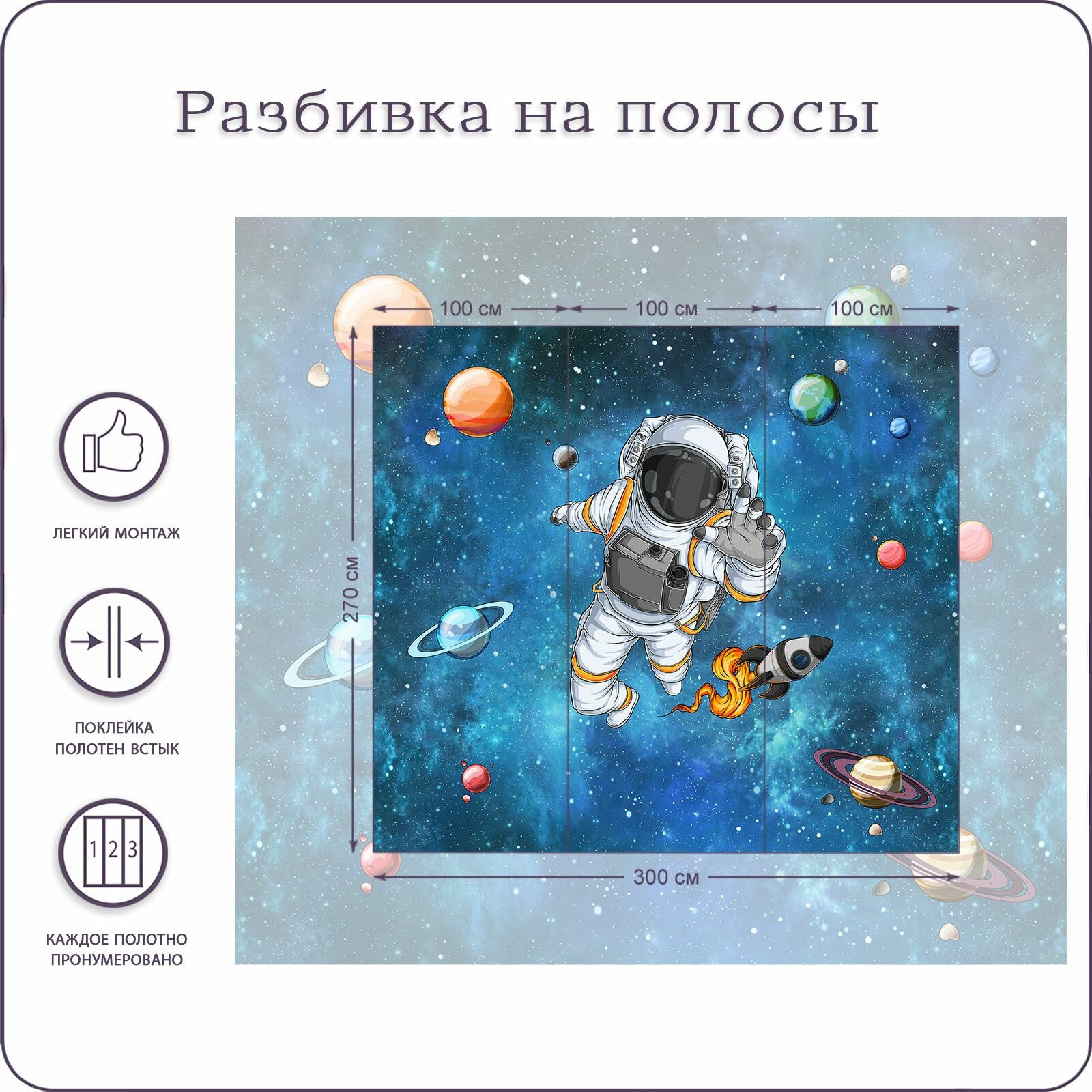 Фотообои на стену флизелиновые 3d Детские Для подростка Космонавт Космос 300х270 см Bartonwall K301-Z