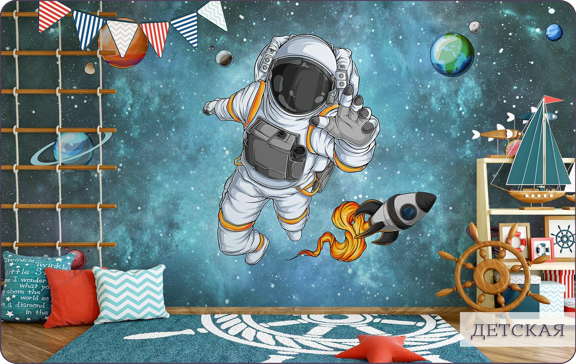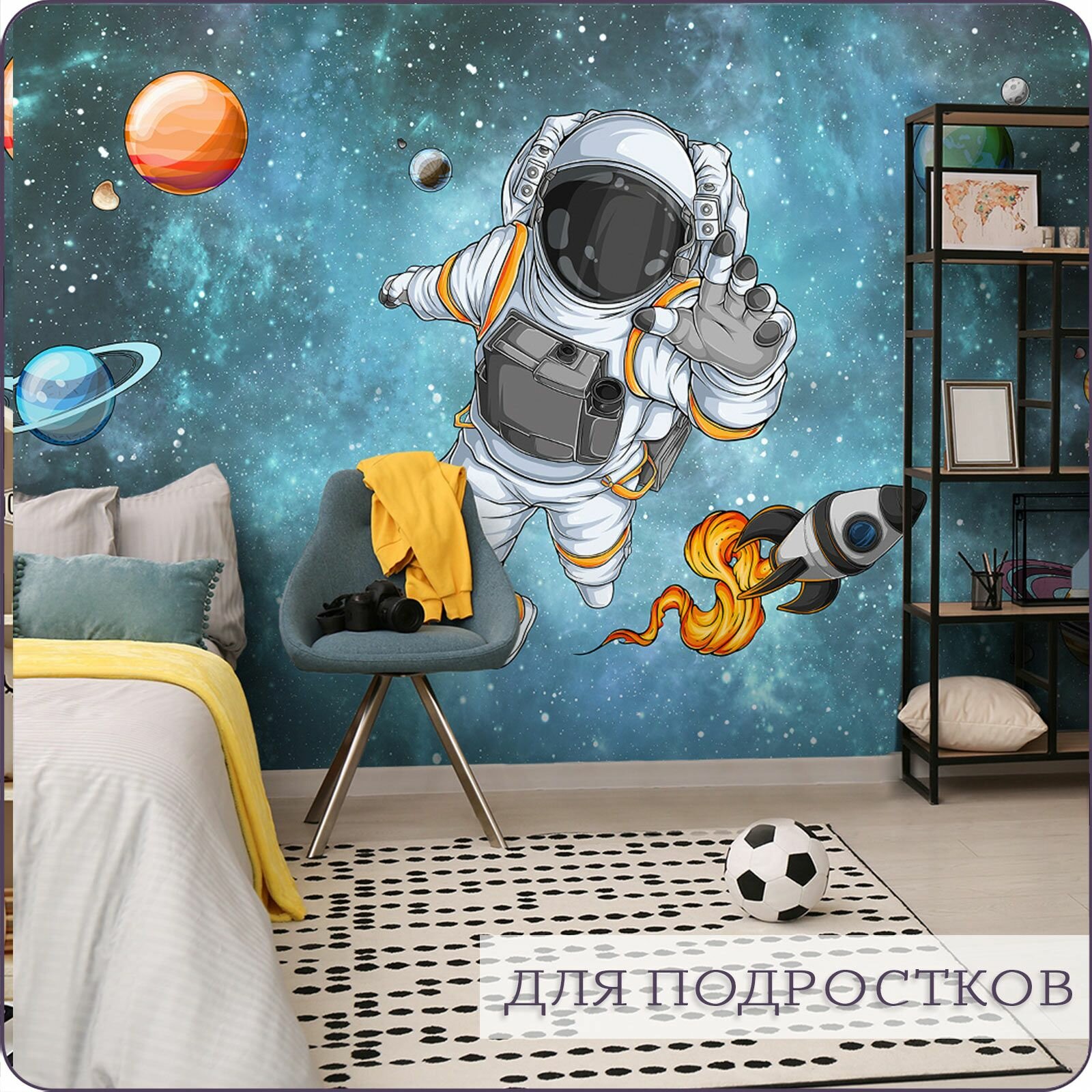 Фотообои на стену флизелиновые 3d Детские Для подростка Космонавт Космос 600х270 см Bartonwall K126