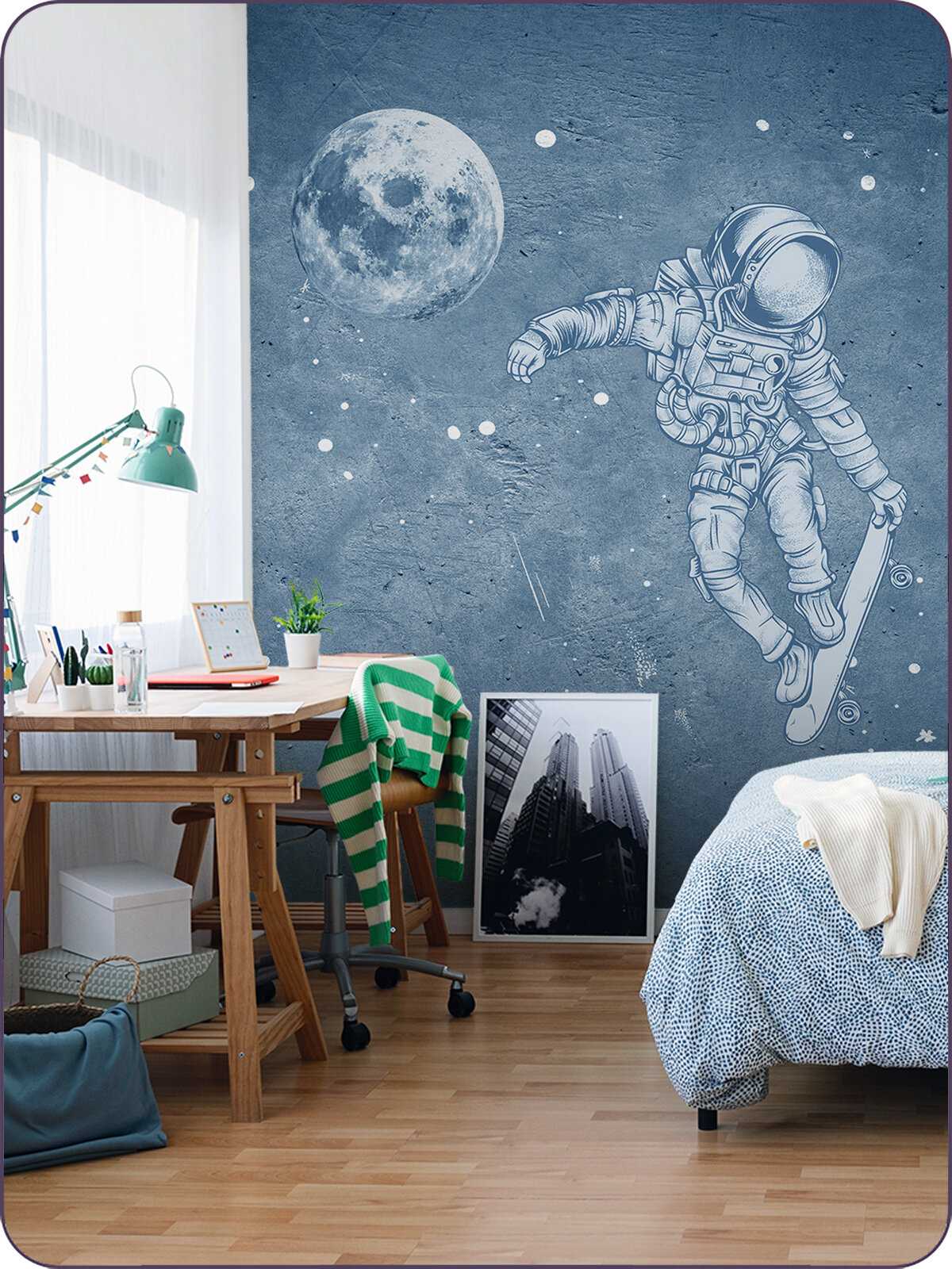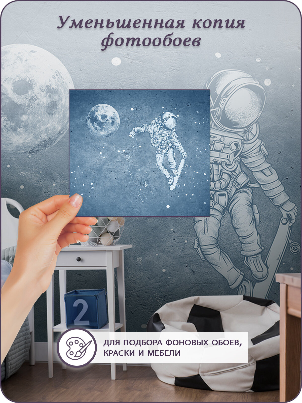 СохранитьФотообои на стену флизелиновые 3d Для подростка Лофт Космонавт на скейте 400х270 см Bartonwall M081-C интересное: