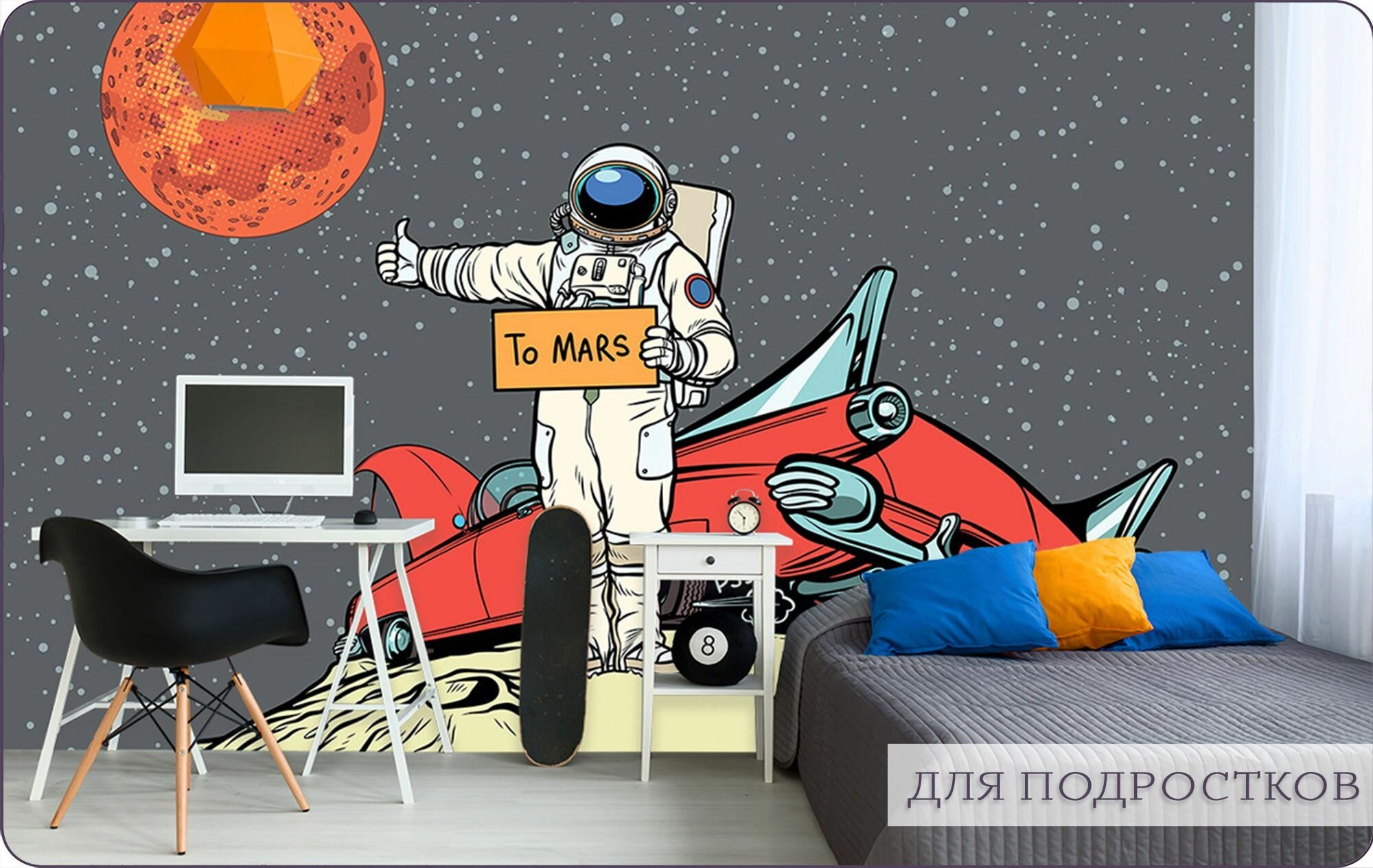 СохранитьФотообои на стену флизелиновые 3d Для подростков Космонавт Машина 200х270 см Bartonwall K221-G интересное: