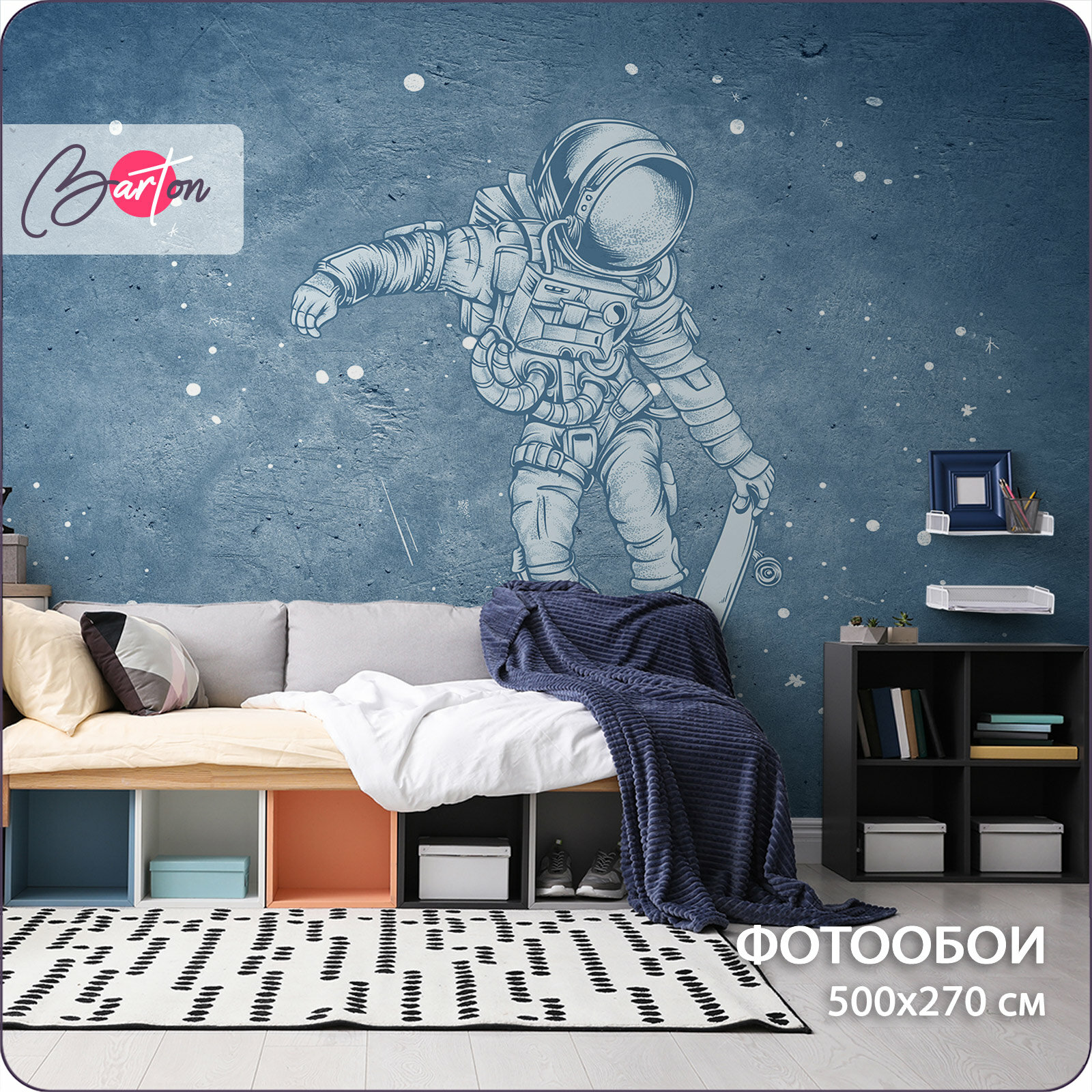 СохранитьФотообои на стену флизелиновые 3d Для подростка Лофт Космонавт на скейте 500х270 см Bartonwall M081-C интересное: