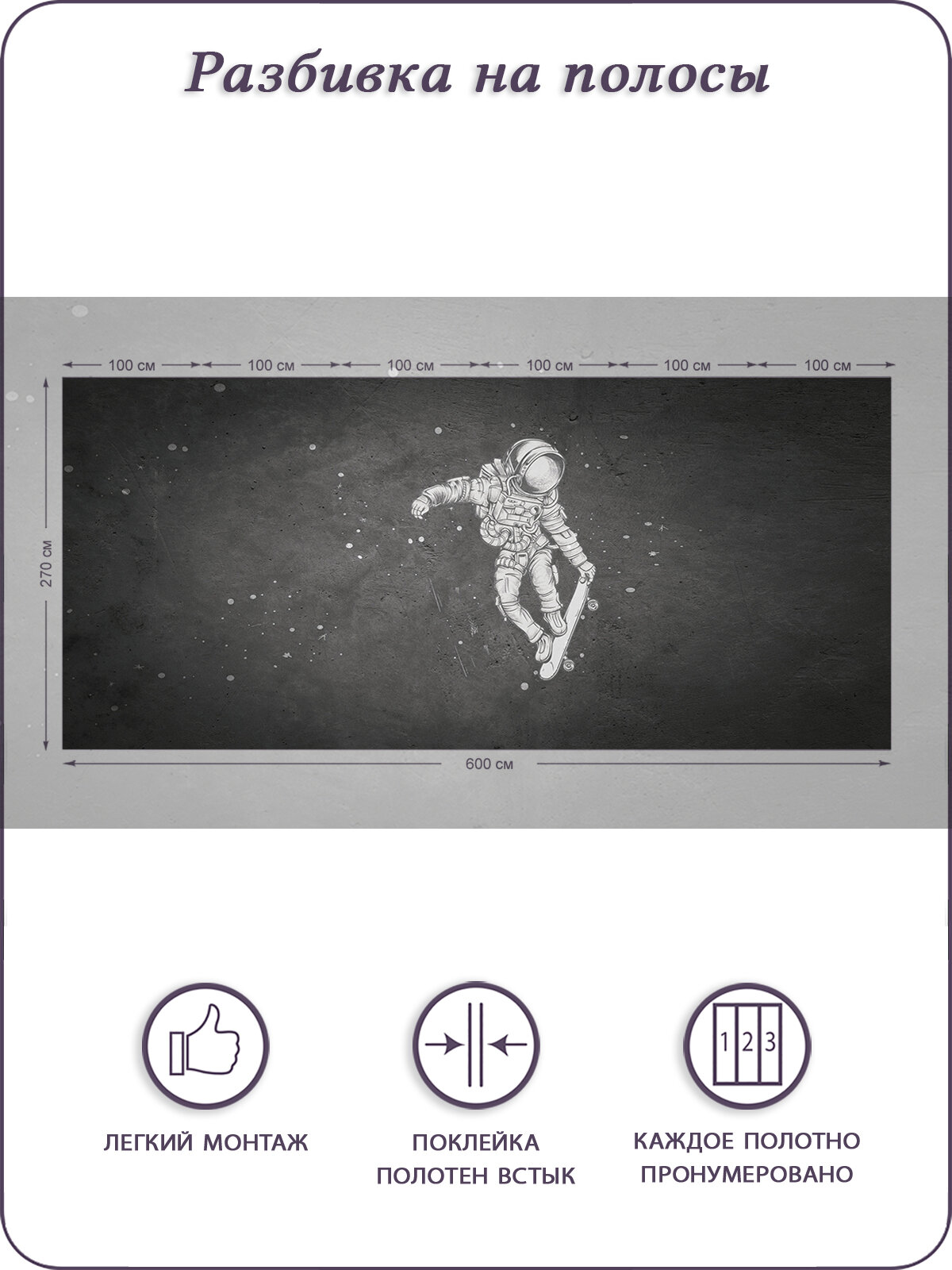 СохранитьФотообои на стену флизелиновые 3d Для подростка Лофт Космонавт на скейте 600х270 см Bartonwall M081 интересное: