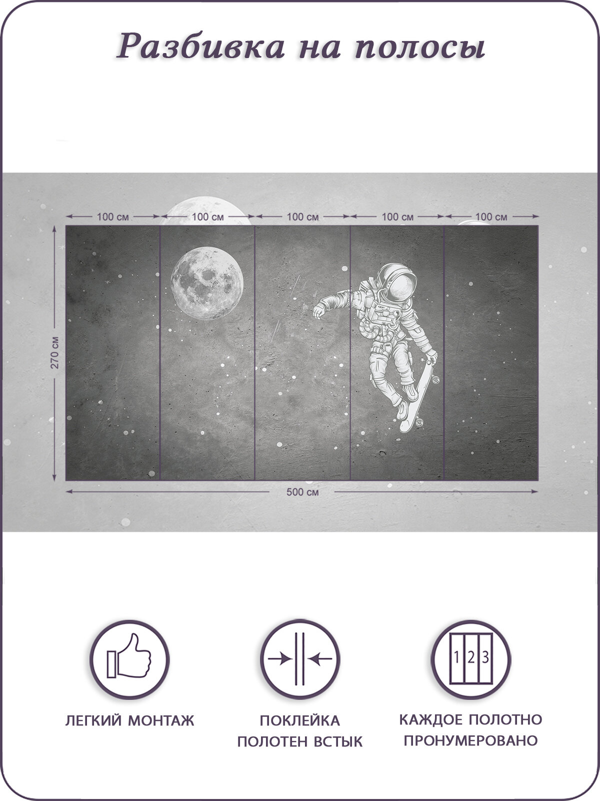 СохранитьФотообои на стену флизелиновые 3d Для подростка Лофт Космонавт на скейте 500х270 см Bartonwall M081-G интересное:
