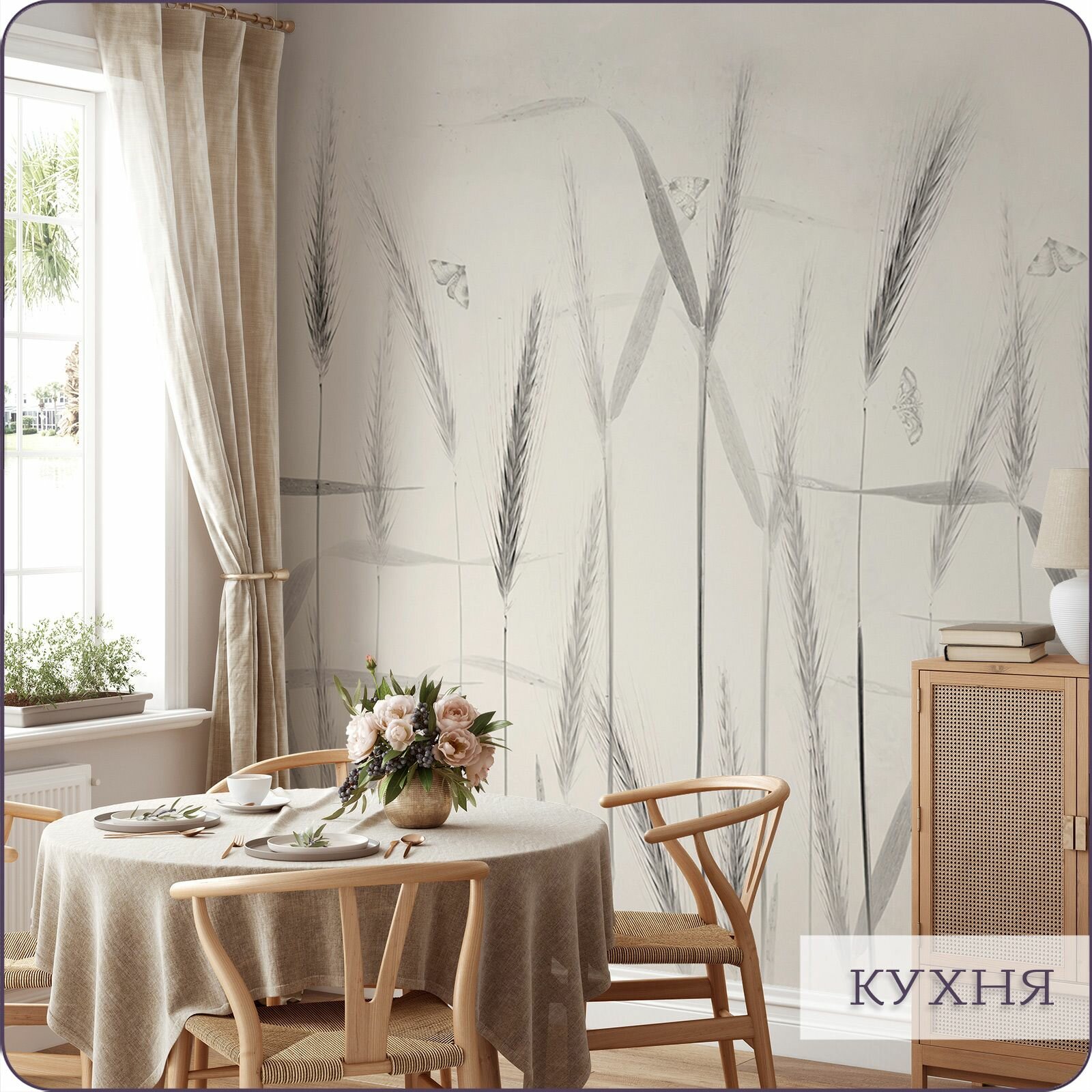 Фотообои на стену флизелиновые 3d Колосья Сухоцветы 300х270 см Bartonwall N170_P